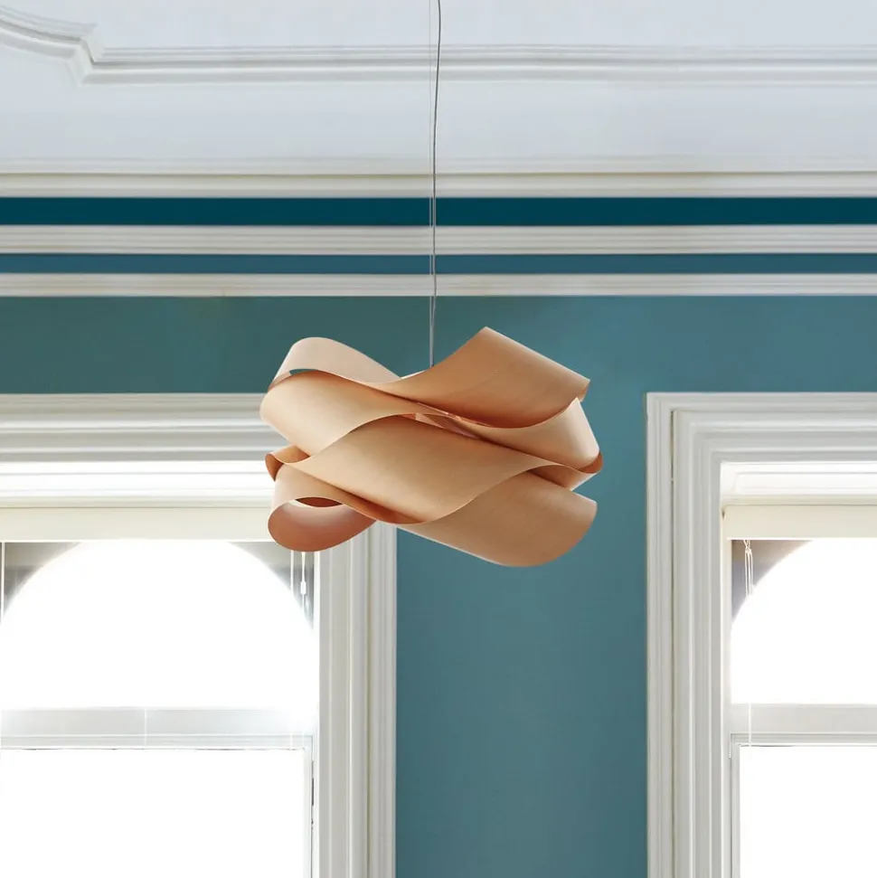 Den irske produktdesigner Ray Power lader sin passion for tredimensionelle former af tyndt materiale få frit løb i sine kreationer. Link er ligesom mange andre armaturer skabt i samarbejde med den spanske producent LZF-Lamps. Deres ekspertise inden for træforarbejdning er også tydelig i Link pendellampen, da finerstrimlerne er fremstillet ved hjælp af deres egen patenterede Timberlite®-proces.