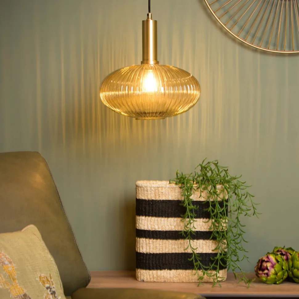 Maloto glas-hængelampe, Ø 30 cm, ravgul