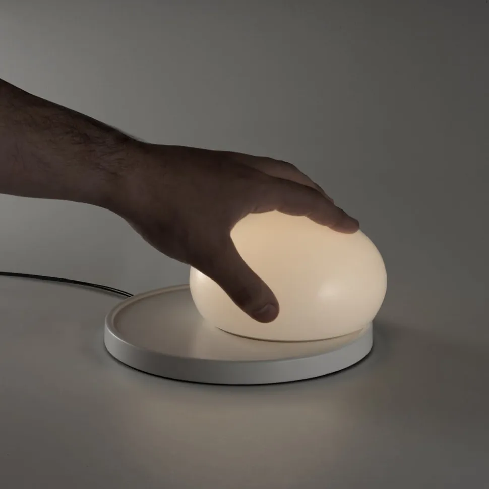 Med Bolita har Florian Kallus og Sebastian Schneider fra Studio kaschkasch realiseret deres ønske om at skabe et armatur i vores meget tekniske verden, der kan dæmpes mekanisk. Det er lykkedes dem på glimrende vis med designet af Bolita LED-bordlampen. Bolita sætter berøringssansen i fokus igen. På den runde stålbase sidder et lysende organ af blæst opalglas, hvori der er monteret varm hvide LED’er. Deres lys kan dæmpes ved blot at flytte glasset med hånden.