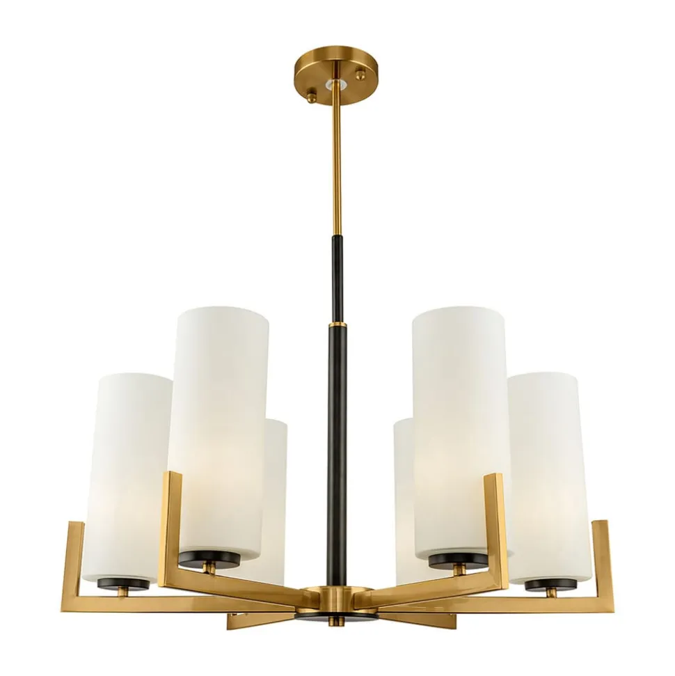 Maytoni Fortano lysekrone, 6 lyskilder, glasskærme