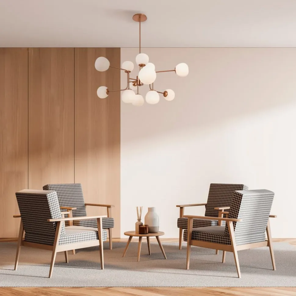 Maytoni lysekrone Erich, messing roséglas/metal 12 lyskilder.