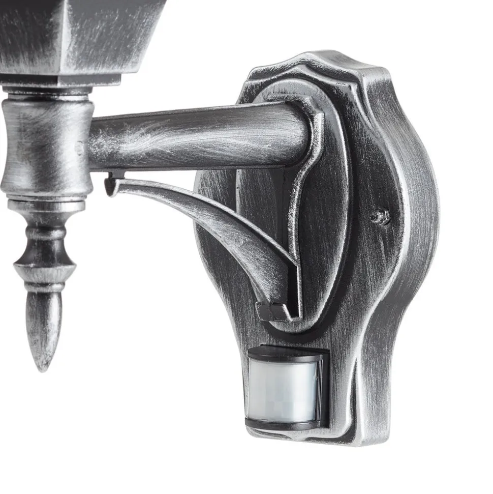 Milanos lampekorpus består af plexiglas i blykrystal look og giver lyset en indbydende glød. Denne udendørs væglampe er udstyret med en bevægelsessensor, som har en detekteringsvinkel på 140° og en rækkevidde på 8 m. Tidsindstilling: 5 sek. – 8 min.