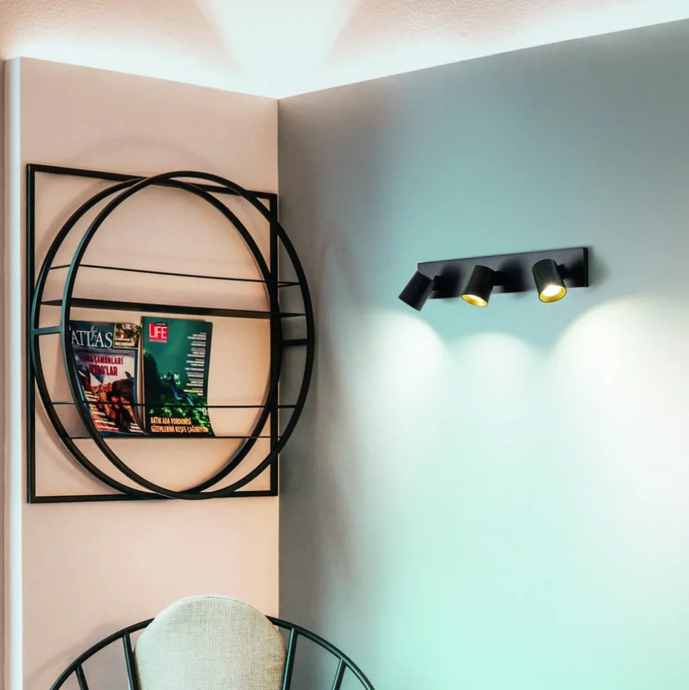 Modo spot, 3 lyskilder, sort, dekorative ringe, GU10, aluminium