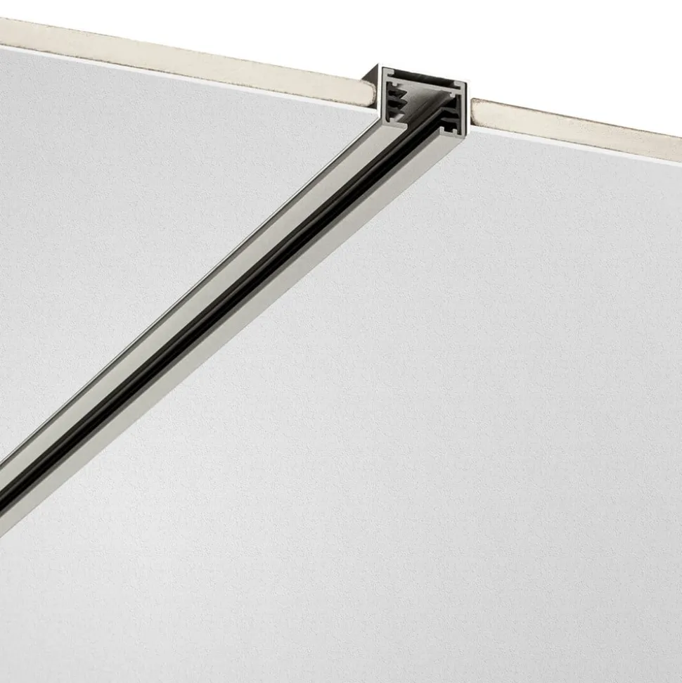 Indbygningsprofil til DUOline 2-fase skinne Med monteringsprofilen som tilbehør kan strømskinnerne monteres i loftet eller væggen i stedet for på overfladen. Takket være det enkle design i aluminiumfarve kan skinnen integreres i mange forskellige farve- og indretningskoncepter.