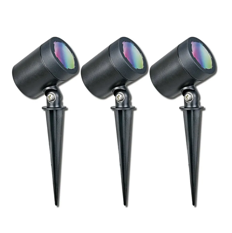 Flores LED udendørsspot med jordspyd i praktisk sæt med 3 stk – kan styres med fjernbetjening, app eller stemmeassistent Den moderne Flores LED udendørsspot er udstyret med et jordspyd for nem installation. Det betyder, at de nemt kan installeres overalt i haven og udendørs. Spotlamperne er udstyret med et toningsstyringsmodul og giver farverigt og hvidt lys i forskellige temperaturområder med deres integrerede LED’er. Uanset om det er varmhvidt eller dagslys, kan den rigtige lysstemning vælges når som helst og til enhver lejlighed. Indstillingerne foretages enten med en passende tint-fjernbetjening eller via forbindelsen til et ZigBee smart home-system med en kompatibel app. Stemmestyring med stemmeassistenten Alexa er også mulig. Derudover kan hver lampe styres individuelt, så der kan indstilles individuelle farveaccenter. Sættet med 3 lamper kan udvides til op til 5 lamper, så den moderne og smarte Flores LED udendørsspot kan bringe farve til haven. Det praktiske sæt med 3 lamper kan bruges på mange forskellige måder, uanset om det er til belysning af udvalgte områder eller blot til belysning. Takket være den høje grad af beskyttelse er spottene støvtætte og beskyttet mod vandstråler, så de kan bruges overalt uden tøven. Funktioner/kompatibilitet: – kan styres via en passende tint-fjernbetjening (se tilbehør) – kan styres via app baseret på ZigBee radiostandard 3.0 – kompatibel med stemmeassistenten Alexa (Amazon) – kan integreres i ZigBee-baserede smart home-systemer, for eksempel med Philips Hue, Osram Lightify etc. – forskellige hvide toner (1800-6500 K) og op til 16 millioner farver kan indstilles – dæmpbar i alle valgte lysfarver – kan udvides til maksimalt 5 havespots (udvidelse fås separat) – hver lampe kan styres individuelt – beskyttelsesklasse IP44 (stænktæt)