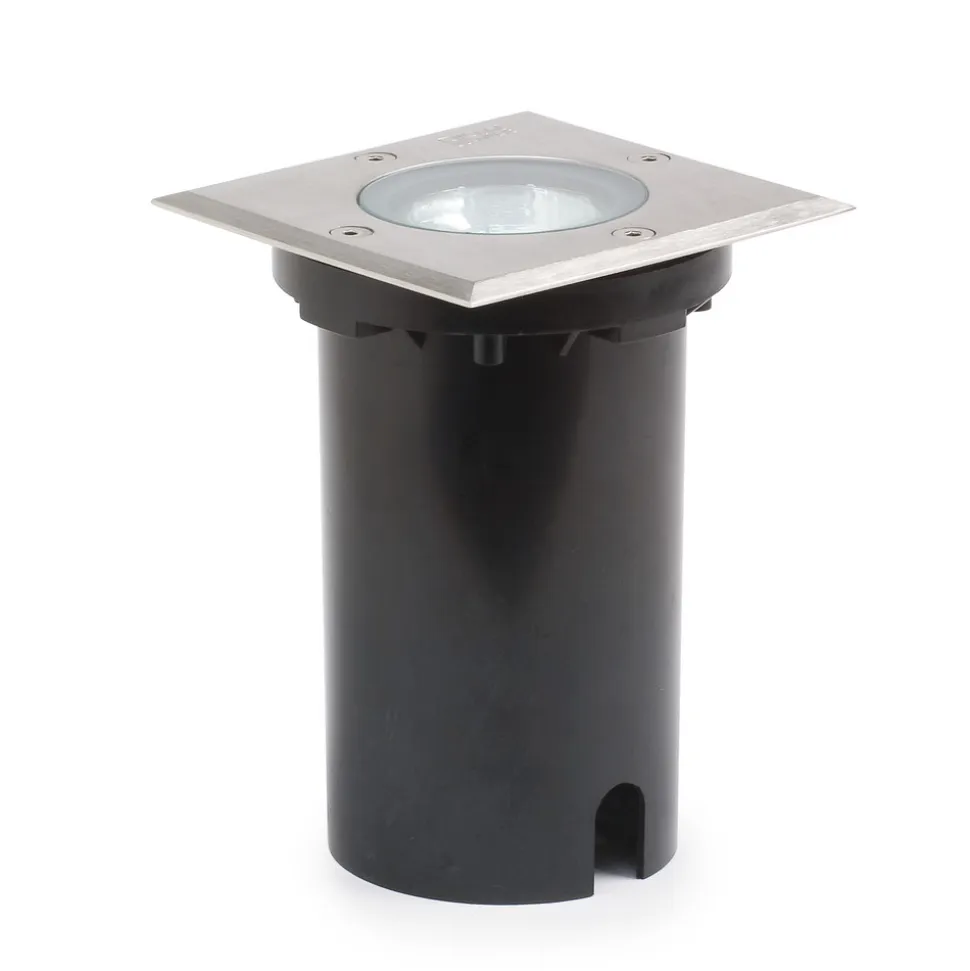 Nedgravningsspotten har en firkantet form og er velegnet til sikker og moderne belysning af indkørsler, gangstier og terrasser. Spotten tåler en belastning på op til 1,5 tons. Indbygningsdybden er 15 cm. Den synlige plade består af rustfrit stål og satineret glas, elementet til nedgravning består af vejrbestandigt kunststof. Kapslingsklasse IP65. Inkl. kabelføring.