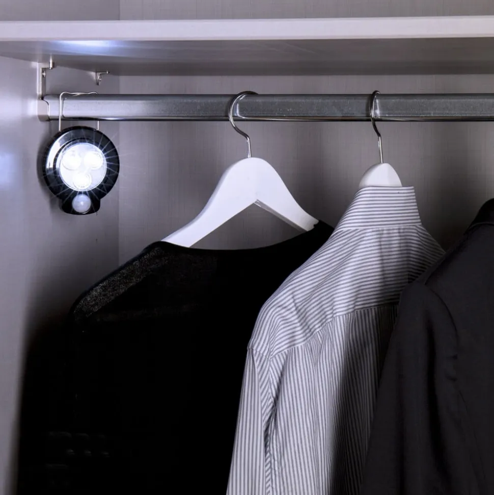 Alsidig Nightlight Flex Sensor-natlampe med batteridrift Nightlight Flex Sensor-natlampen er udstyret med en praktisk magnetisk holder, der kan sættes fast på en lang række overflader med den selvklæbende monteringsflade, så den f.eks. kan bruges i garderoben, men den kan også hænges op eller placeres ved hjælp af det udfoldelige beslag. Tre AAA-batterier (medfølger ikke) får de 0,3 W LED’er til at lyse og give orientering i dagslysets lyse farve. Dette gøres automatisk af den integrerede sensor. Lyset tændes og slukkes normalt via tænd/sluk-kontakten og tændes automatisk i skumringen via den integrerede dag/nat-sensor.
