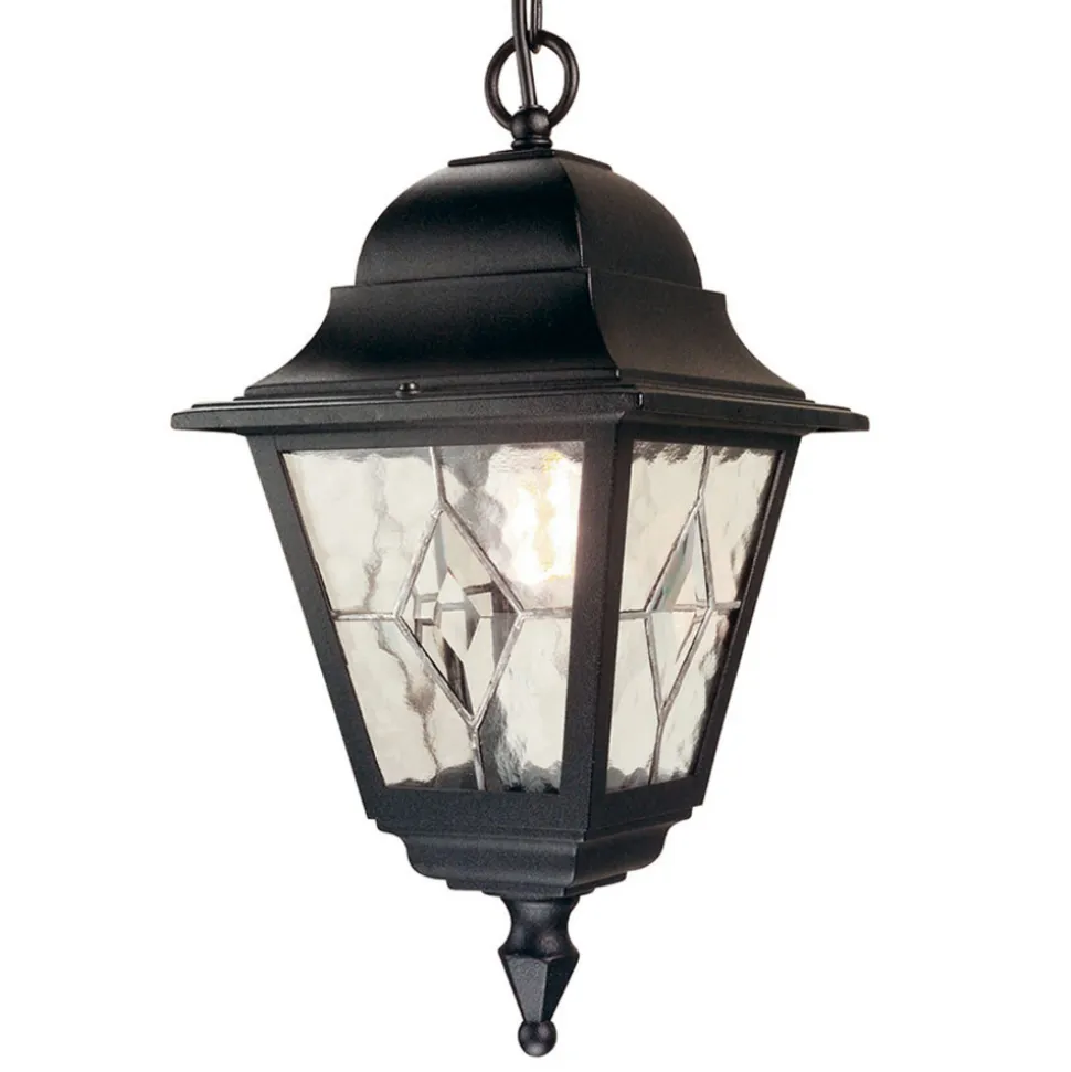 Med Norfolk pendellampe er det overdækkede udendørs område, f.eks B. udstyre en pergola eller et tagudhæng med atmosfærisk belysning. Norfolk spreder også et hyggeligt landsted med sin smukke lanterneform og antikke design. Hver rude består af fem individuelle dele, der er blyglaseret i hånden.