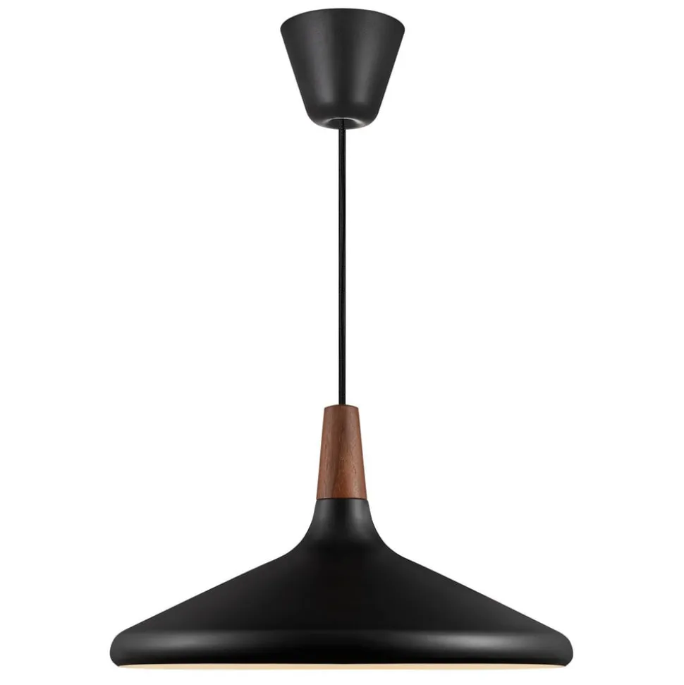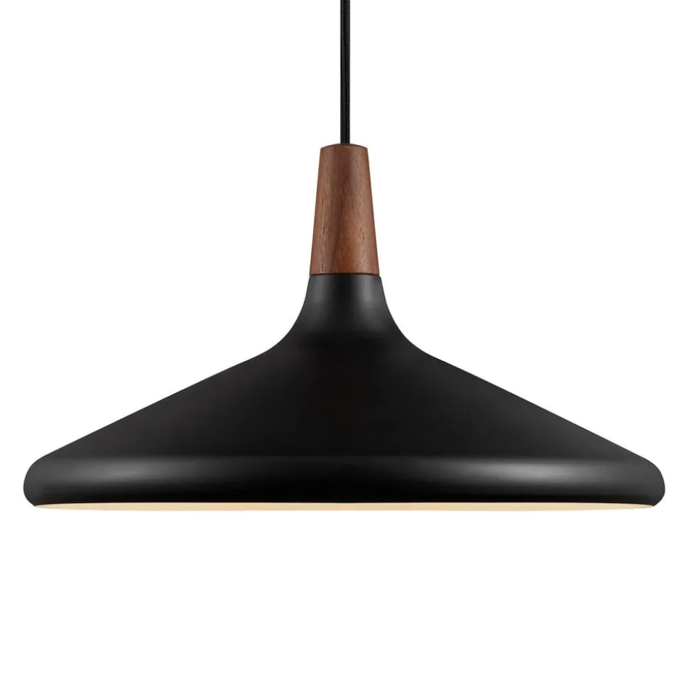 Nori er fascinerende med sin nordiske charme og minimalisme. Den uigennemsigtige skærm er lavet af metal og giver direkte og punktlig belysning ved at skrue en lyskilde efter eget valg ind i fatningen. Ved overgangen til kablet har den kegleformede skærm en mørk detalje i valnøddetræ, som understreger det skandinaviske look og er FSC-certificeret. Nori er smuk som en enkelt version, men også i en række med flere, og kan f.eks. bruges som bordbelysning eller til at belyse en bar eller et receptionsområde.