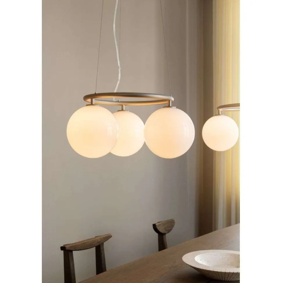Lysekrone Miira 3 Circular kombinerer skandinavisk enkelhed med en luksuriøs materialekombination af metal og mundblæst glas. Den harmoniske farve i messing og opal skaber en varm, indbydende atmosfære og passer perfekt ind i forskellige rumkoncepter. Sofie Refer’s design imponerer med klare linjer og et afbalanceret formsprog, der sætter stilfulde accenter i både spisestuen og stuen.