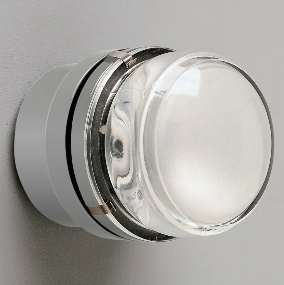 Fresnel-væglampen giver klart lys indendørs og udendørs Denne højkvalitets væglampe med IP44 er ideelt udstyret til alle opgaver i og omkring hjemmet. Det robuste aluminiumshus har en såkaldt Fresnel-linse af formstøbt glas med et sandblæst hoved. Det skaber en direkte og diffus lyseffekt. Fresnel kan bruges som væg- eller loftslampe og ser særligt godt ud i badeværelser og køkkener. Oluce – italienske designerlamper siden 1945 Siden grundlæggelsen i 1945 har Oluce været en af de førende italienske producenter af designerlamper. I løbet af de seneste årtier har italienske og internationale designere udviklet lyskreationer til Oluce, som er blevet sande ikoner inden for lyskunst. Erfaring med fremstilling af lamper og høje kvalitetsstandarder i valget af materialer er grundlaget for de visuelt tiltalende, men alligevel funktionelle og effektive lamper fra Italien. At skabe en perfekt syntese af form og indhold har altid været Oluce-designernes maksime.