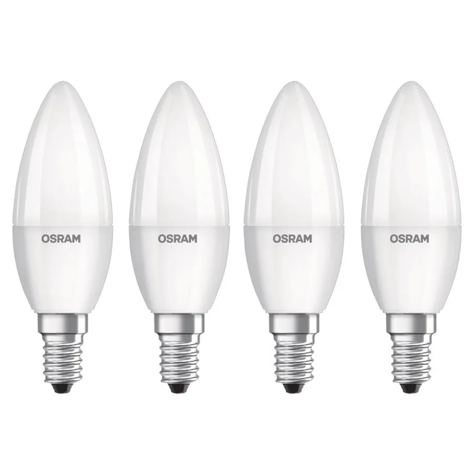 Denne LED-lysestage fra OSRAM leveres i en sammenklappelig kasse med 4 stk. Dens lysstyrke er sammenlignelig med en 40 W glødelampe, men den kræver kun en brøkdel af energien.