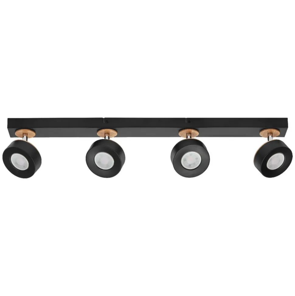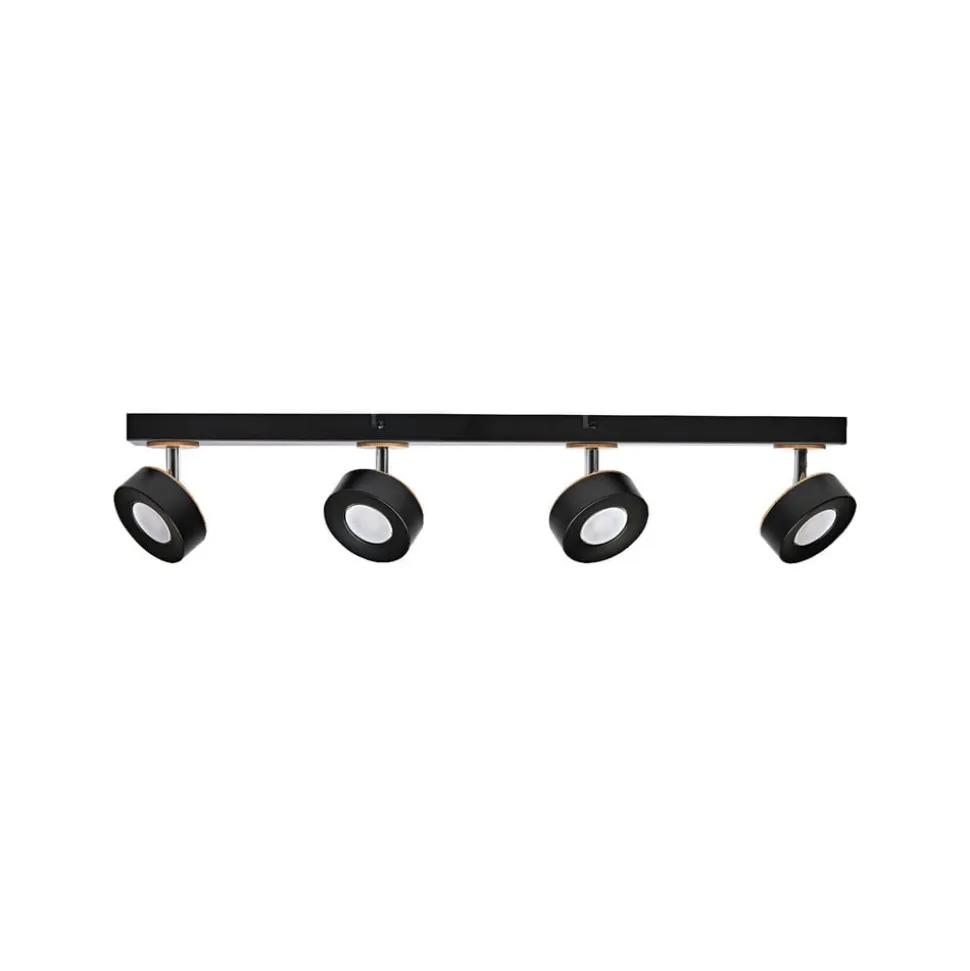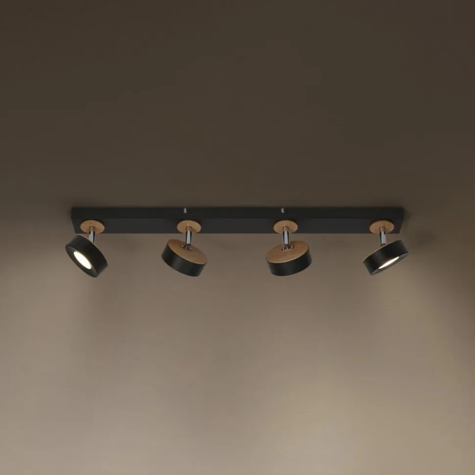 LED-loftspot Pluto giver med sine fire justerbare spots en fleksibel rumbelysning og charmerer desuden med sine trædetaljer. Produktkarakteristika: Lampeserien omfatter varianter med op til 4 spotlampehoveder. Kabinetmateriale: Metal og træ. Justerbare lampehoveder. Produktfordele: Kabinet af høj kvalitet med mat overflade på de metalliske komponenter. Enkel montering. Anvendelsesområder: Indendørs anvendelse. Korridorer, entréer, trappeopgange, stuer, kældre. Køkkener, arbejdsområder. Lofts- og vægmontering. Teknisk udstyr: Komplet monterings- og tilslutningsudstyr medfølger.