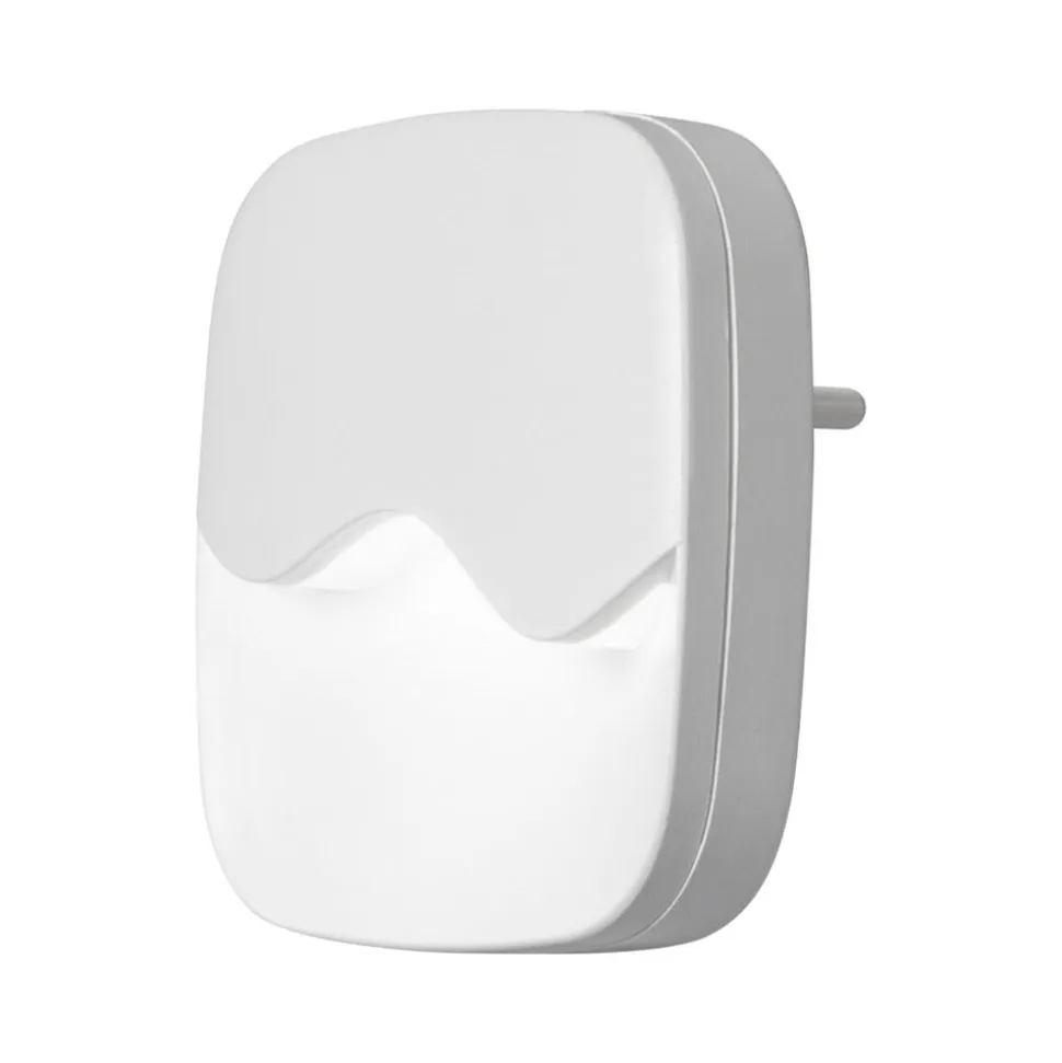 Med automatisk kobling takket være dagslyssensor – LED-stikkontakt-natlampe LUNETTA WAVE Direkte tilslutning til 220…240 V. Attraktivt og funktionelt design. Plug-and-play med EU-stik. Automatisk tænding og slukning ophængt af dagslys. Anvendelsesområder: Børneværelser. Dekorativ boligbelysning. Kun til indendørs belysning.