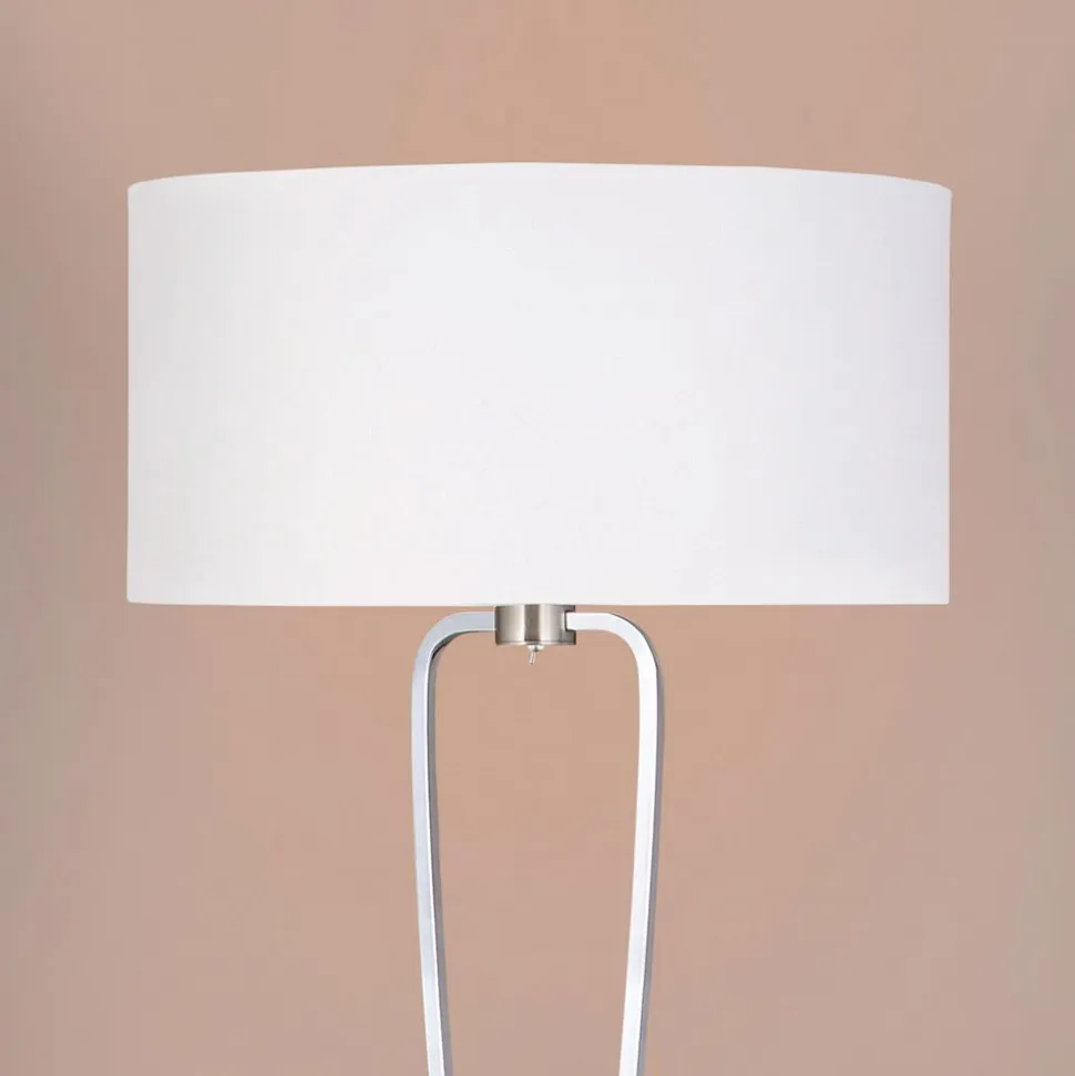 Kombinationen af nikkelfarvet metal og den hvide skærm af skinnende chintz giver en moderne optik og det flotte design virker meget smart og elegant. Med Paris får ethvert beboelsesrum en indbydende atmosfære. Gulvlampen er på grund af den specielle form også et optisk highlight.