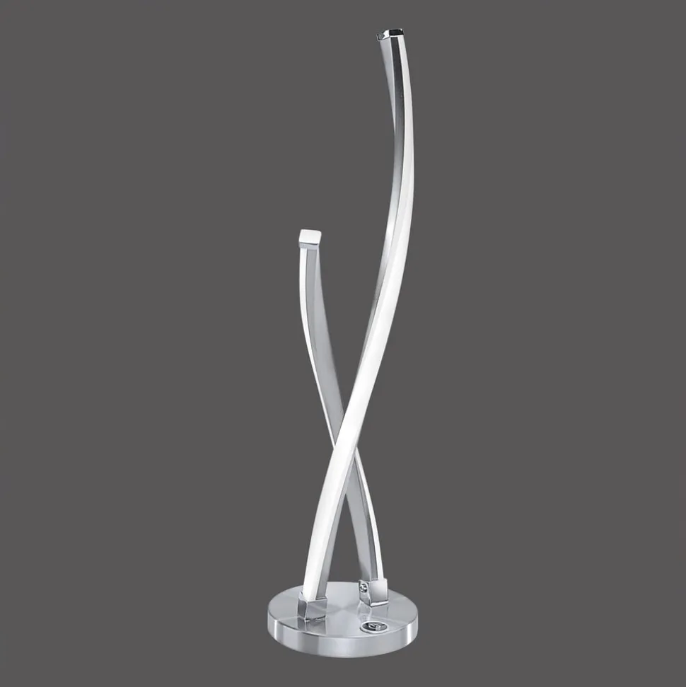 LED-bordlampe Polina med touchdimmer Der er indbygget LED-kort i de to lange elementer. Med den touchdæmper, der er integreret i foden, kan LED-bordlampen Polina ikke kun tændes og slukkes, men også dæmpes. Desuden har lampen en hukommelsesfunktion, så den senest valgte lysstyrke automatisk genindstilles, når lampen tændes igen.