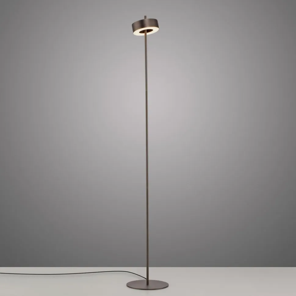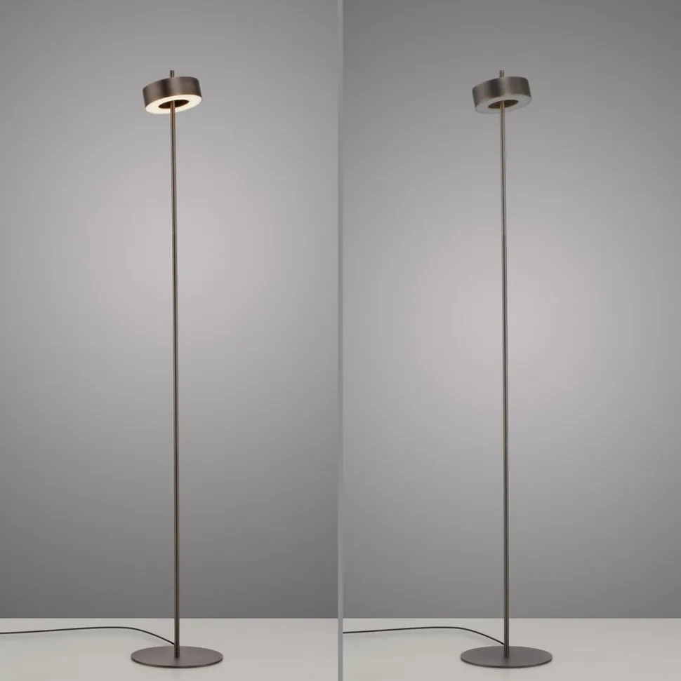 Moderne Q-Rotate LED-gulvlampe med vipbar lampeskærm – smart og kan styres med fjernbetjening Q-Rotate LED-gulvlampen er både funktionelt og visuelt i tråd med tiden. LED-modulet er placeret inde i en ringformet lampeskærm af aluminium, som er drejeligt monteret nær toppen af den slanke, lodrette rammestang. Lyset sendes ud gennem satiniserede dæksler i toppen og bunden af ringen, og der medfølger en passende fjernbetjening til at tænde, dæmpe og justere farvetemperaturen. Ud over fri justering af lyset tilbyder den også forudkonfigurerede muligheder, så den perfekte belysning er praktisk tilgængelig i næsten enhver situation. Alternativt kan Q-Smart-Home-gulvlampen integreres trådløst i ZigBee-baserede smart home-systemer (bro kræves) for at styre den via app eller stemmekommando, afhængigt af konfigurationen.