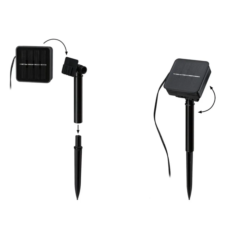 Solar LED-strip 78897 med skumringssensor, solpanel og genopladeligt batteri Den tre meter lange LED-strip skaber en hyggelig atmosfære på altanen eller terrassen eller endda i haven, langt væk fra en strømtilslutning, da den drives af solen. Det eksterne solpanel kan ganske enkelt sættes i jorden eller i en krukke og rettes perfekt ind efter solen. Båndet kan afkortes på de markerede punkter. Den er udstyret med varmhvide LED’er, og bagsiden er selvklæbende, så den er nem at montere. Lyset tændes automatisk i skumringen af skumringssensoren. Afhængigt af mængden af sollys er opladningstiden 4 til 6 timer; når den er fuldt opladet, lyser strimlen i 3 timer.