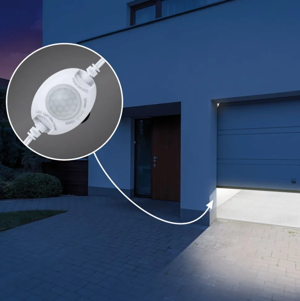 Denne bevægelsessensor bruges som supplement til et eksisterende MaxLED LED-stripsystem og sikrer, at lyset tændes og slukkes automatisk ved skumring. Dette sker, så snart sensoren registrerer bevægelse i detekteringsområdet. Uanset om det er i trappeopgangen, gangen eller kælderen, bidrager MaxLED PIR-bevægelsessensoren til belysning efter behov overalt i tørre indendørs områder.