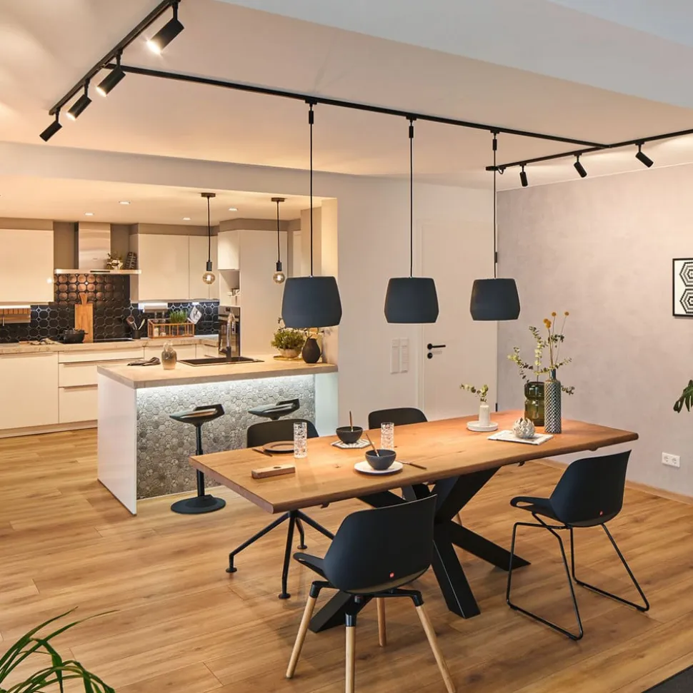 Det URail 2Easy Basic-vedhæng tilbyder dekorative muligheder inden for URail skinnesystemet. For eksempel kan den kombineres individuelt med en URail 2Easy-paraply. Disse er lavet af glas, stof eller metal. Hvem vil undvære det, kan skrue enhver E27-pære i E27- fatning – her anbefales det at vælge en glødelampe i åbne armaturer.