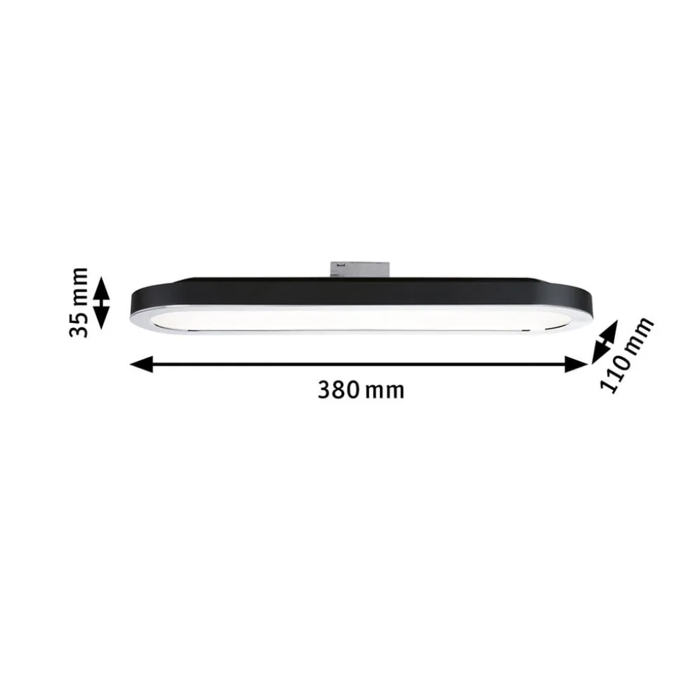 URail LED-panel passer harmonisk ind i et URail skinnesystem på grund af sin runde, aflange form. Den har en mat sort ramme, som den er integreret i skinnen med. Rammen har det innovative LED-modul, der strækker sig over næsten hele lampens bredde. På grund af den matte, hvide diffusoroverflade kommer LED’ernes varme hvide lys ind i rummet uden blænding.