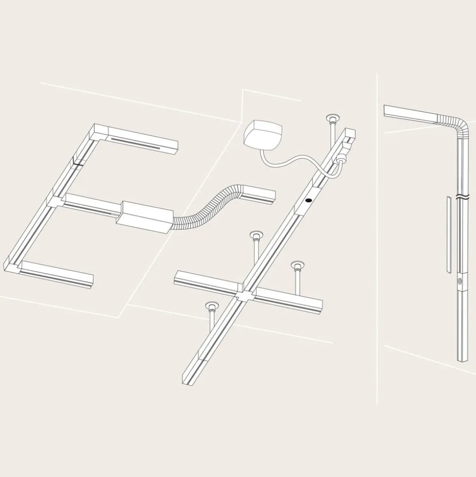 Med den centrale tilførsel kan der også tilsluttes 5-leder loftudtag, som gør det muligt at skifte system separat. Den ene udgang af indføringen tilføres af en fase, den anden udgang af en anden fase.
