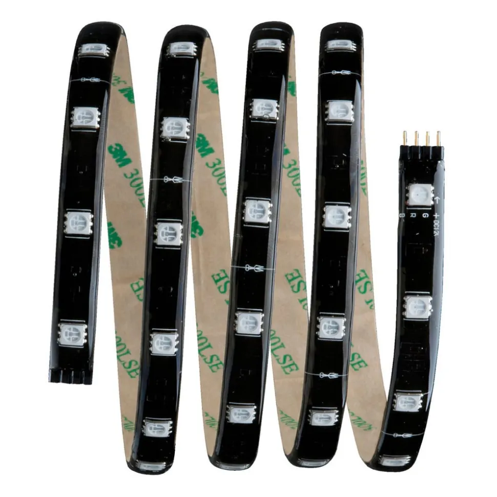 Strimlerne kan fastgøres meget let takket være klæbende bagside og plug-in system. De kan afkortes og forlænges til en samlet længde på 2,5 m. LED-strimlen er lavet af sort plastik og har en gennemsigtig belægning, der beskytter lysdioderne mod kontakt og fugt. Det fleksible materiale er velegnet til installation på flade eller buede overflader.