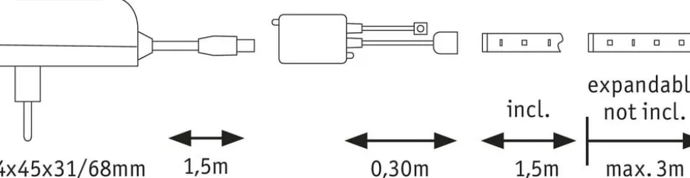 – Inklusive 4-polet stik til tilslutning af strimlerne