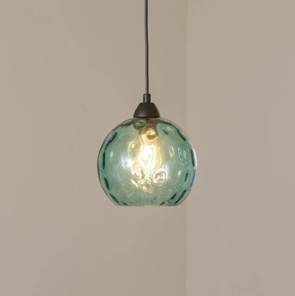 Benek pendellampe: Elegance og alsidighed til moderne boliger Denne lampe, der fremstillet i Europa, imponerer med sin tonede, næsten kugleformede glasskærm med bølget struktur og en højkvalitets finish. Den er ideel til forskellige boligområder som spisestue, stue, køkken og soveværelse og bringer farve ind i rummet.