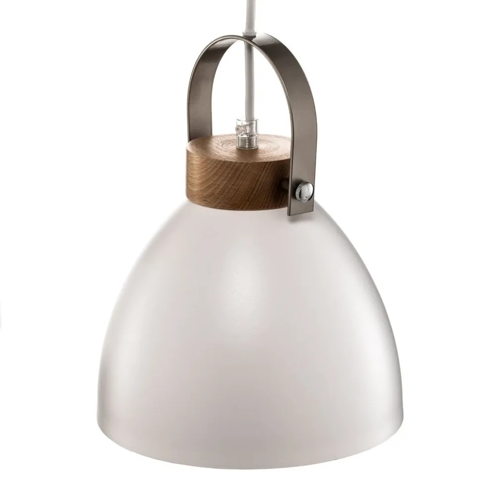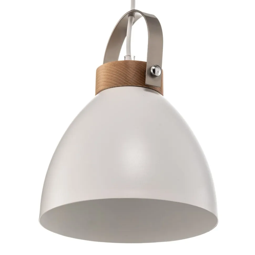 Pendellampen Bergen med 2 lyskilder er en stilfuld belysningsløsning til moderne boliger. Den er fremstillet af en harmonisk kombination af stål og lyst træ og passer perfekt ind i forskellige indretningsstilarter. Lampen er holdt i en elegant hvid farve, der suppleres af de naturlige træelementer og skaber en varm og indbydende atmosfære.