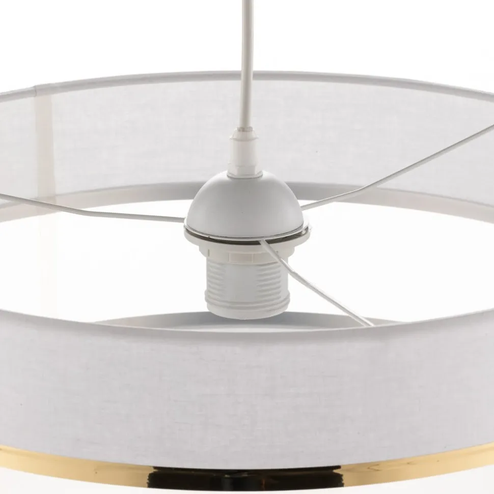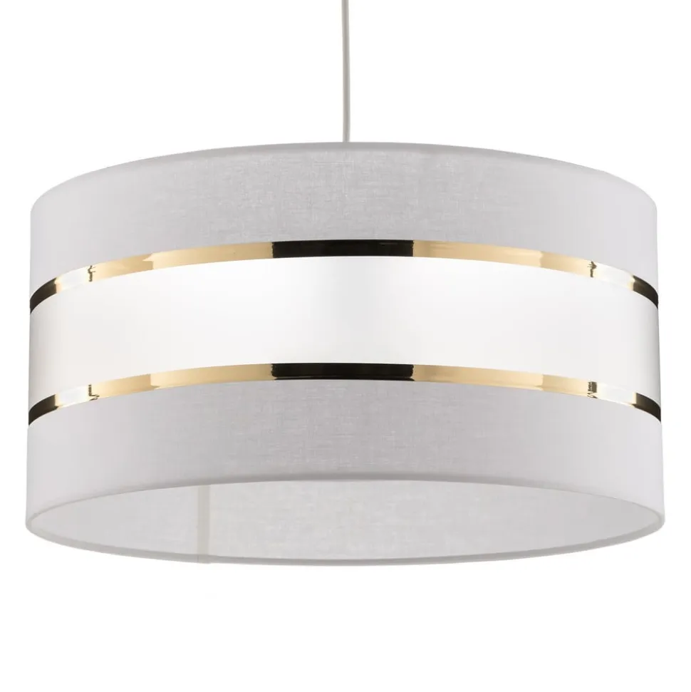 Pendellampen Helen kombinerer moderne design med materialer af høj kvalitet som jern, stof og plast. Den hvide og guldfarvede tekstilskærm giver ethvert rum et elegant præg og sikrer en harmonisk lysfordeling. Denne lampe er ideel til stuer, soveværelser og spisestuer og passer nemt ind i forskellige indretningsstilarter.