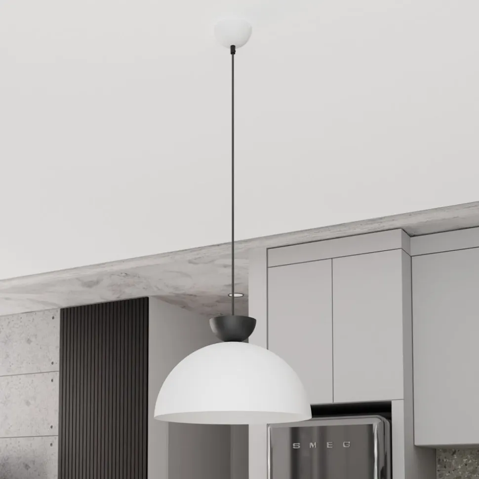 Pendellampe Lunaro imponerer med sin moderne stil og en harmonisk kombination af hvid skærm og sort ophæng. Denne lampe, der er fremstillet i Europa, er et blikfang i ethvert rum, hvad enten det er i stuen, spisestuen, køkkenet eller i entreen. Den høje kvalitet og det tidløse design gør hængelampen Lunaro til et holdbart og stilfuldt element i indretningen.