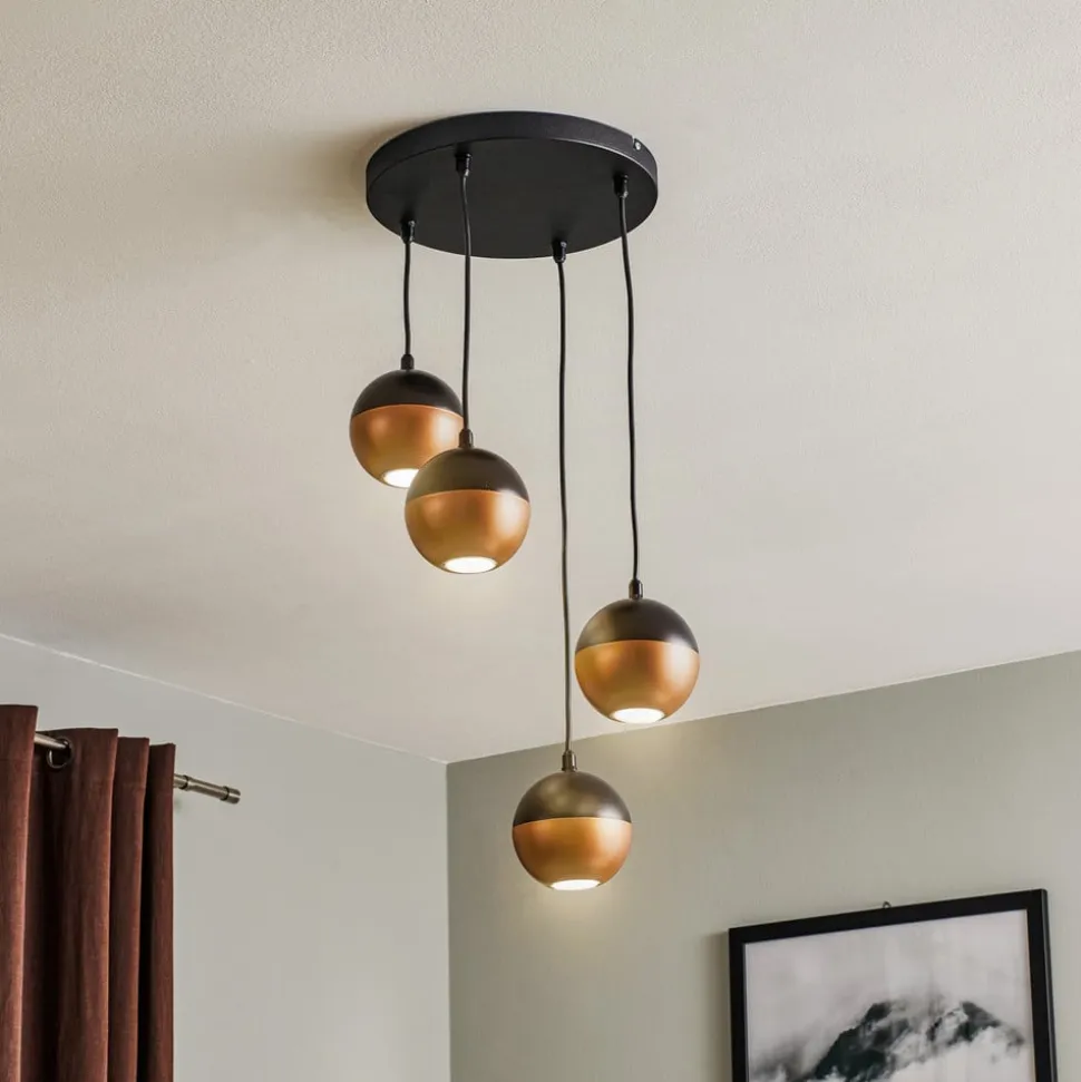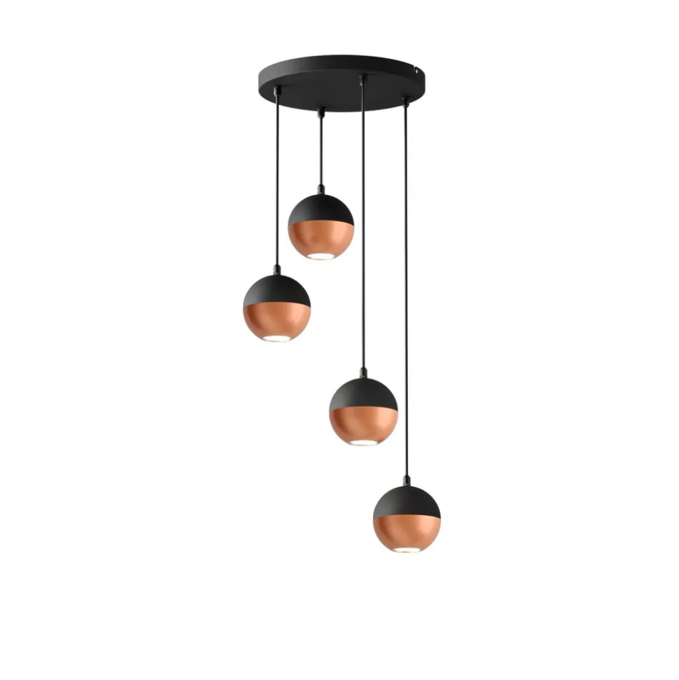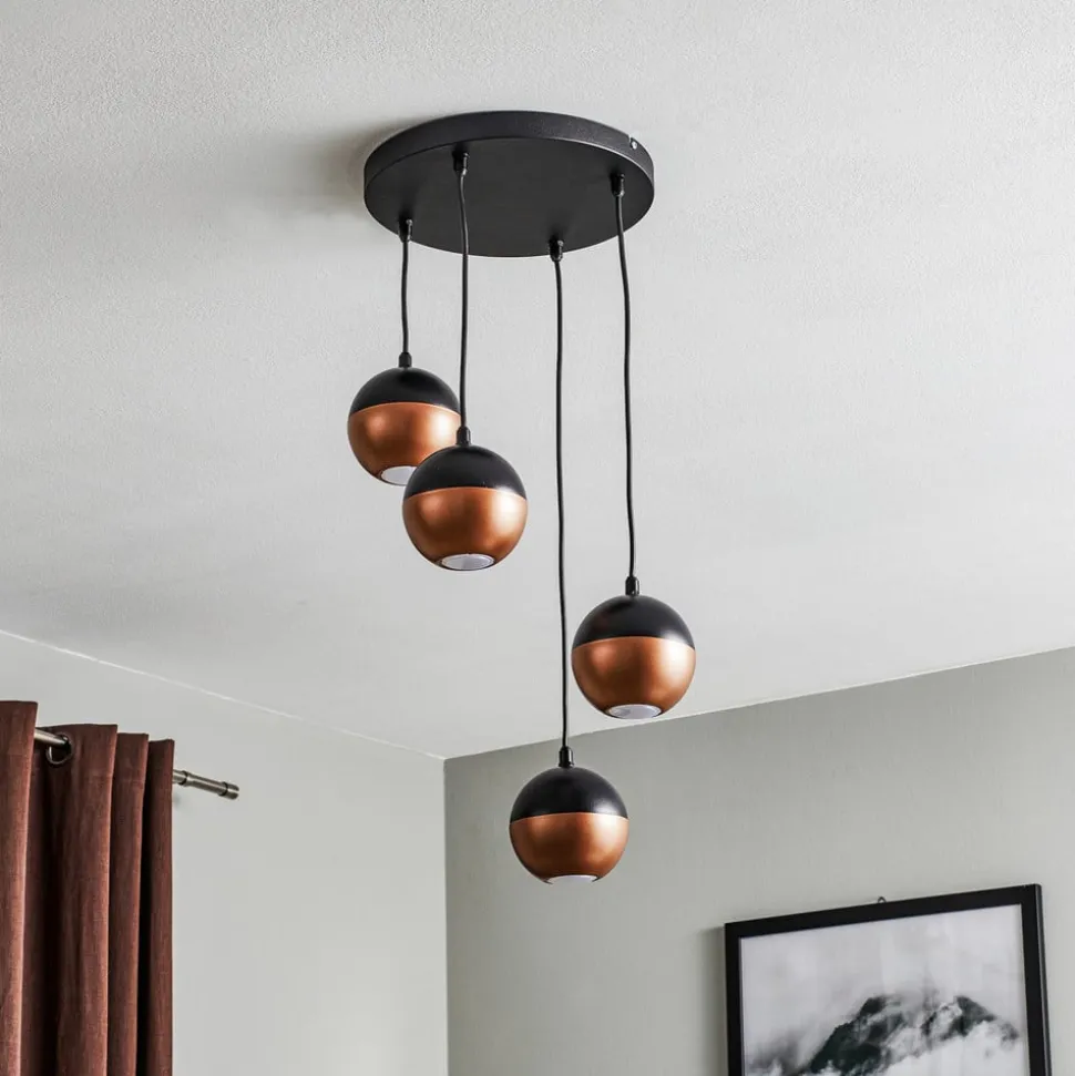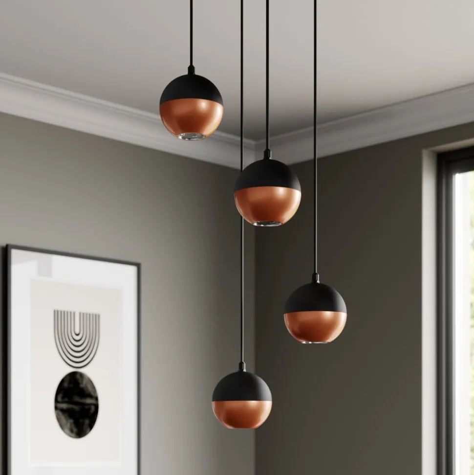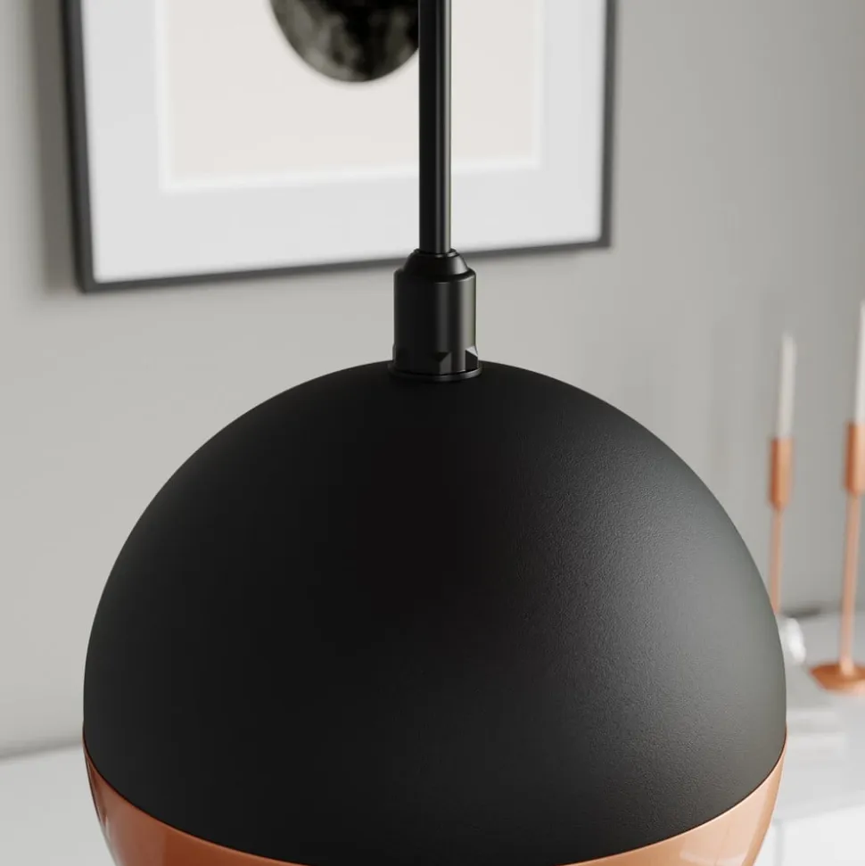 Pendellampen Midnight i sort/kobber forener moderne design med funktionel belysning. Denne lampe er fremstillet af højkvalitetsjern og imponerer med sin stilfulde kombination af sort og kobberfarvet finish. Den universelle lysfarve på 4.000 K skaber en behagelig atmosfære, der kommer til sin ret både i stuen, køkkenet og spisestuen.