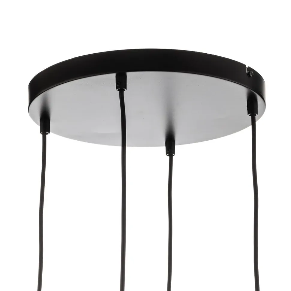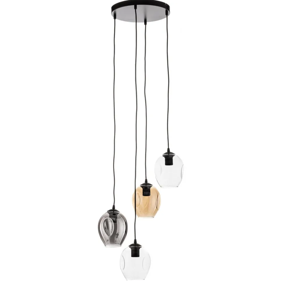 Pendellampe Starla rund 4 lyskilder i grafit, rav og klar kombinerer moderne design med høj kvalitet. Fremstillet af pulverlakeret stål og glas, er denne lampe et stilfuldt supplement til stuen og spisestuen. Kombinationen af farverne sort, grafit, rav og klar skaber et harmonisk og samtidig iøjnefaldende udseende, der giver ethvert rum et særligt præg.