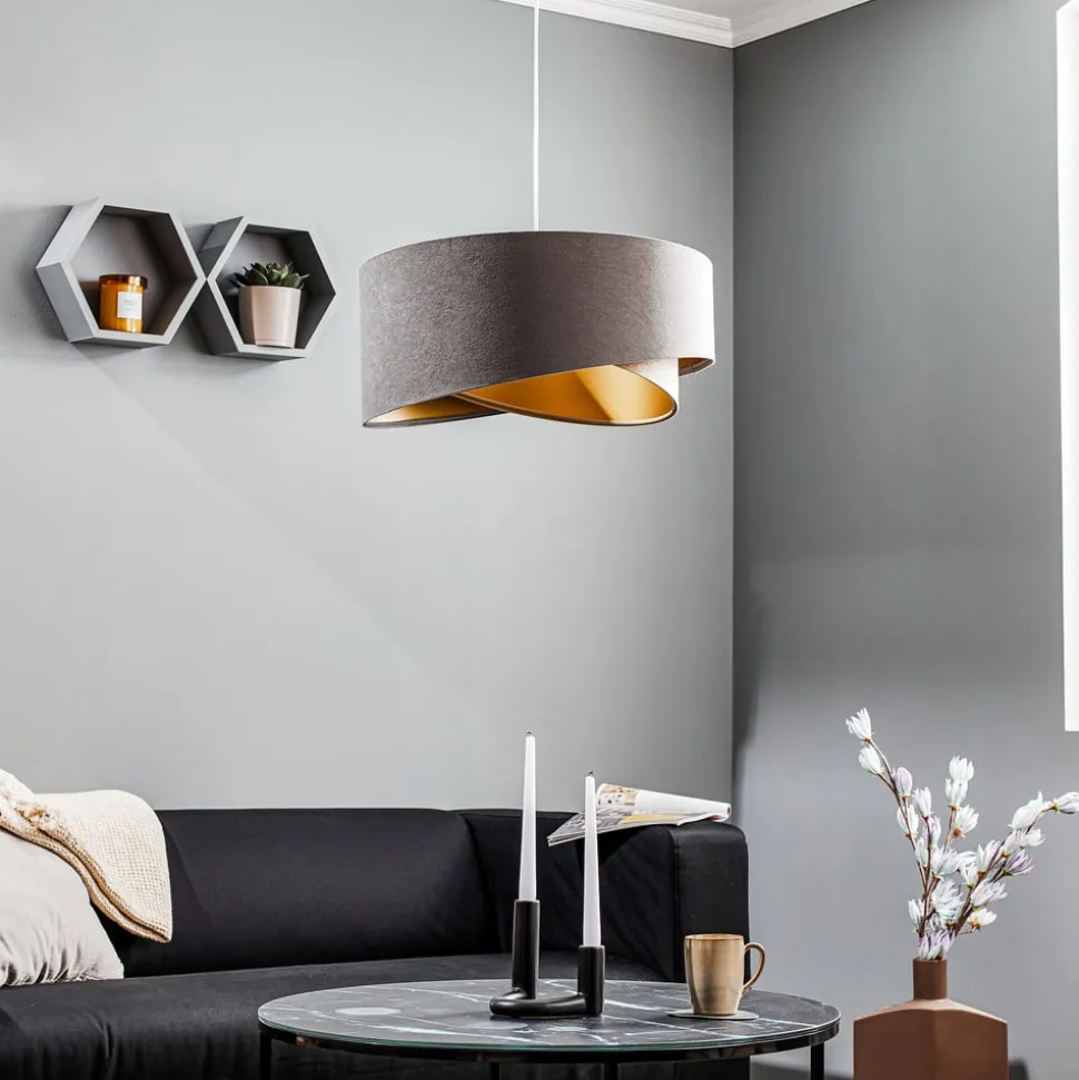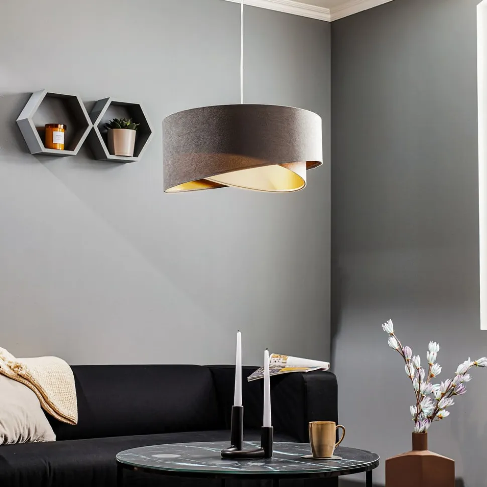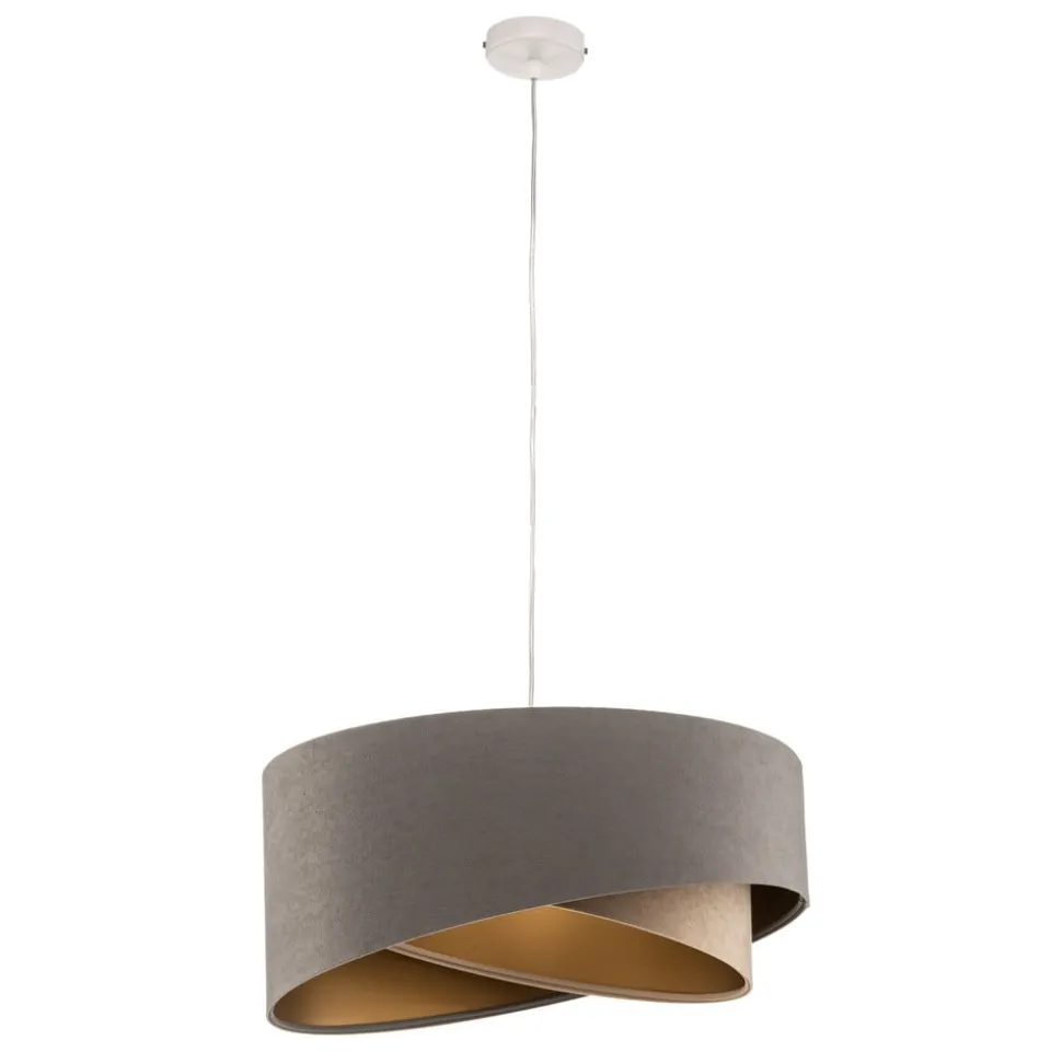 Pendellampe Vivien kombinerer moderne design med en fascinerende farvekombination af grå, beige og guld. Fremstillet af højkvalitets velour og plast, udstråler den en tidløs elegance, der passer perfekt ind i forskellige rum som stuen, soveværelset og spisestuen. Den håndlavede finish giver lampen et individuelt præg og gør den til et særligt highlight i ethvert rum.