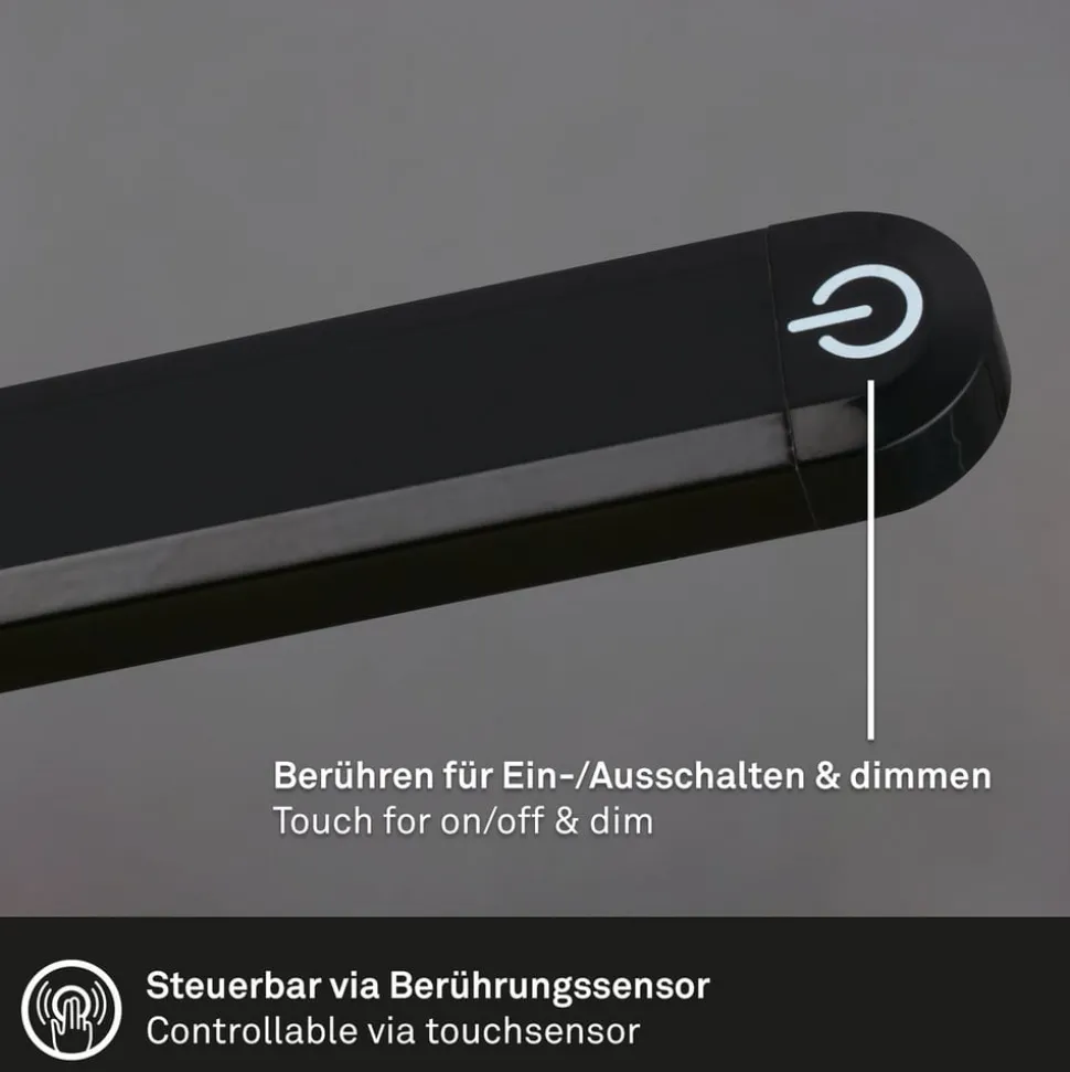 Slank, justerbar Pivaz LED-gulvlampe med dæmpningsfunktionDen moderne Pivaz-gulvlampe af plast og metal overbeviser både på hjemmekontoret og som læselampe i stuen med sit drejelige og svingbare lampehoved samt touch-kontakten, hvormed lysstyrken i det varmhvide lys kan justeres i fire trin.