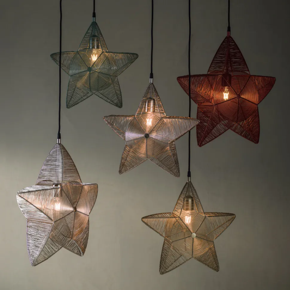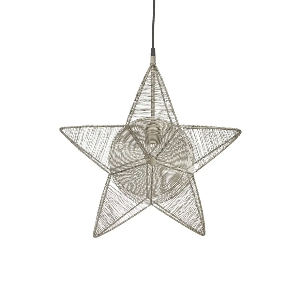 Femtakket dekorativ stjerne Rigel af metal Julestjernen Rigel er håndlavet af metal i et robust design: Den spreder et smukt lys og skaber en vidunderlig julestemning i huset. Ved hjælp af en lille åbning i bunden kan du nå stjernens inderside. Det sorte tekstilkabel er ca. 3,5 m langt og udstyret med et EU-stik og en E27-fatning. Pærerne er ikke inkluderet – kan bestilles separat via tilbehør.