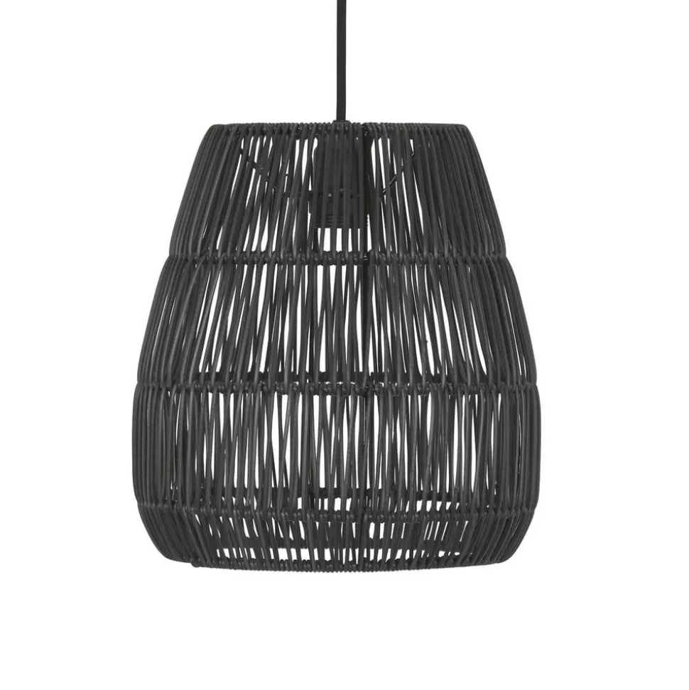 Udendørs hængelampe Saigon, IP44 Saigon er en hængelampe lavet af polyrattan. Polyrattan er et holdbart materiale, der kan modstå vind og vejr. Den vævede struktur skaber et smukt lys. Lampeskærmen sælges med et sort kabelsæt.