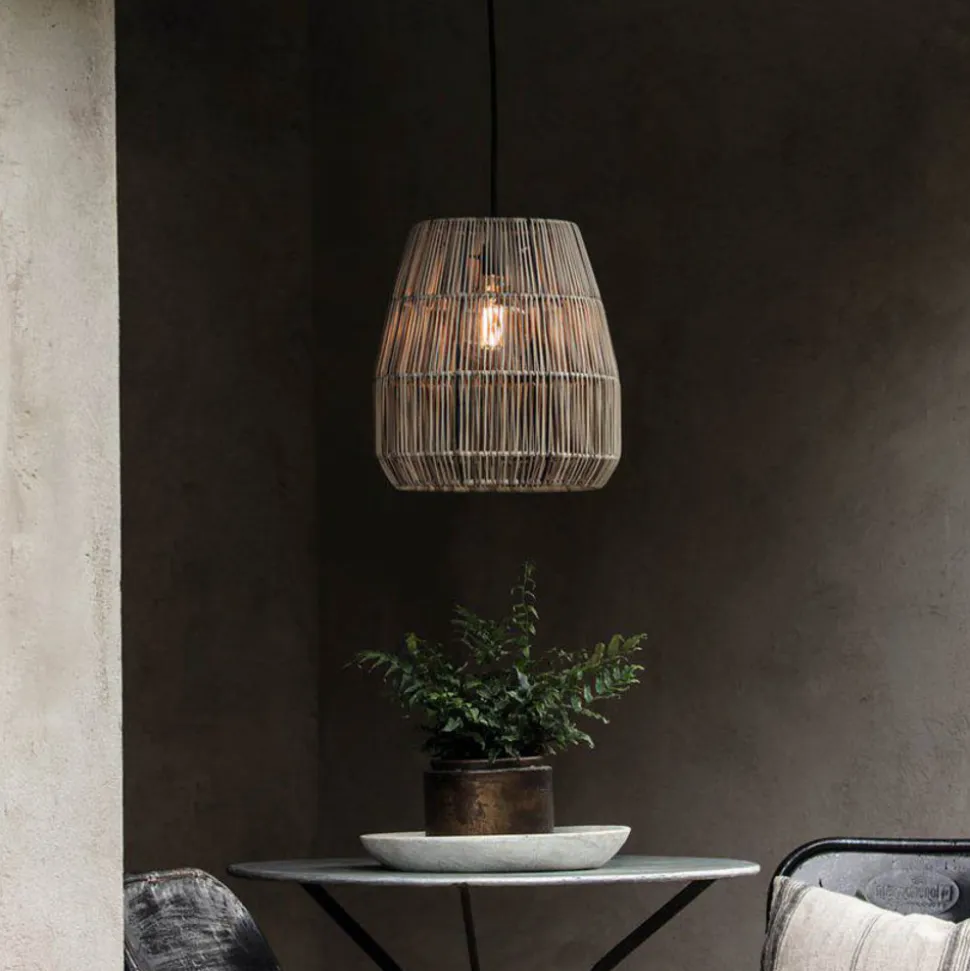 Saigon hængelampe til udendørs brug med 2,5 m kabel og stik Skærmen på Saigon udendørs hængelampe er lavet af vejrbestandig plast med et rattan-look. Den vævede struktur skaber et smukt lys. Saigon leveres inklusive et ophængssæt med vægkontakt – beskyttet mod ugunstige vejrforhold med IP44-beskyttelsesgrad