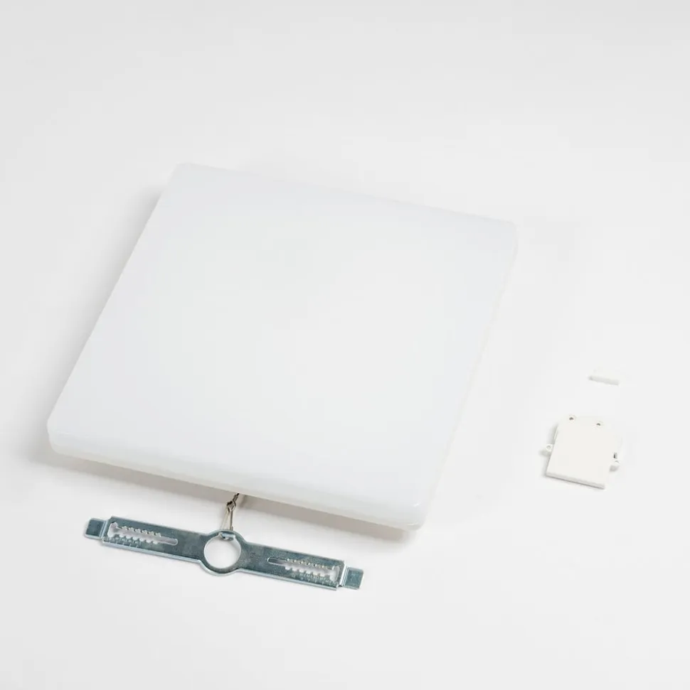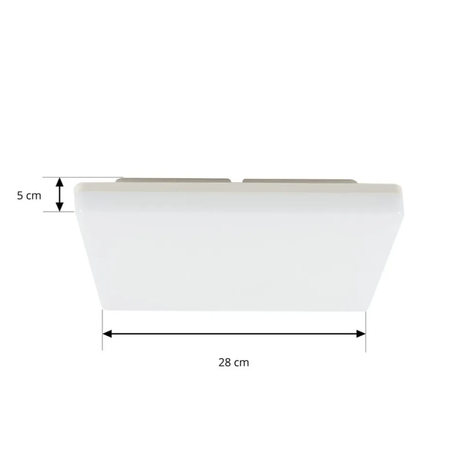 Moderne Artin LED-loftlampe i firkantet design med CCT-funktion og bevægelsessensor Artin LED-loftlampen er en moderne belysningsløsning til forskellige områder i stuen. Den kan installeres i en gang såvel som på et badeværelse, da den er modstandsdygtig over for fugt takket være IP65-beskyttelsesgraden. Armaturet er lavet af slidstærk plast og har en kantet form. Dets tidløse look i hvid kan integreres i mange indretningsstile uden at trænge sig på. En indbygget DIP-kontakt på huset sikrer, at lysfarven kan ændres i tre trin: varm hvid (3.000 K), universal hvid (4.000 K) og dagslys (5.700 K), og en anden DIP-kontakt gør det muligt at indstille lysstyrken i to trin. Desuden er der indbygget en bevægelsessensor i armaturet, som viser sig at være yderst praktisk i hverdagen. Artin-armaturet kan således opfylde mange individuelle behov og er derfor også meget velegnet til brug i den kommercielle sektor. Tekniske data: – integreret bevægelsessensor – CCT-funktion via DIP-switch: 3.000 K / 4.000 K / 5.700 K – beskyttelsesklasse IP65 – udstrålingsvinkel 120° – slagfasthed IK08