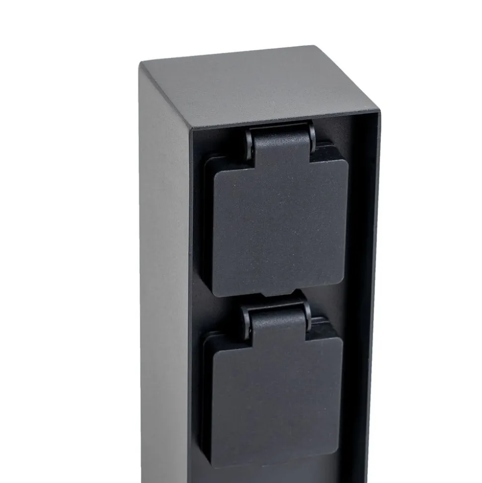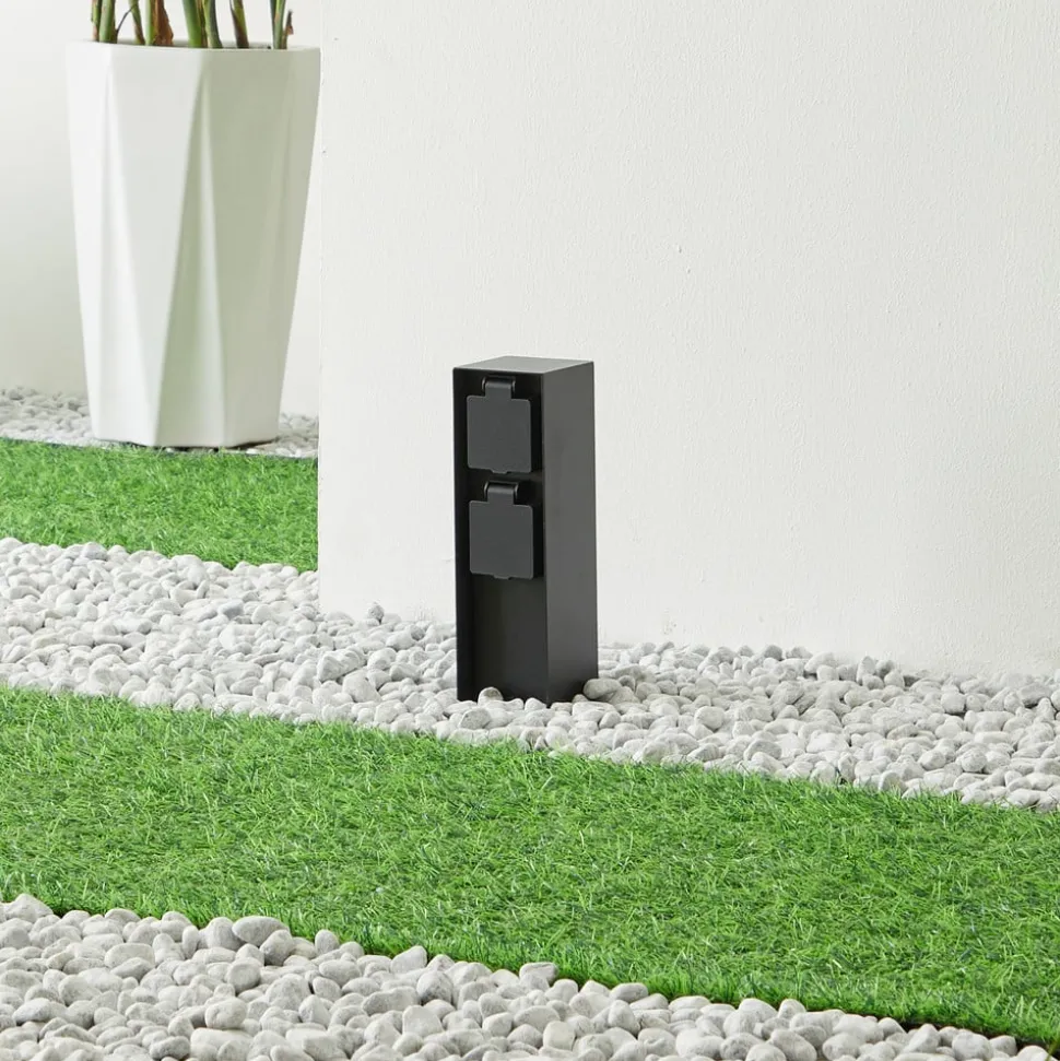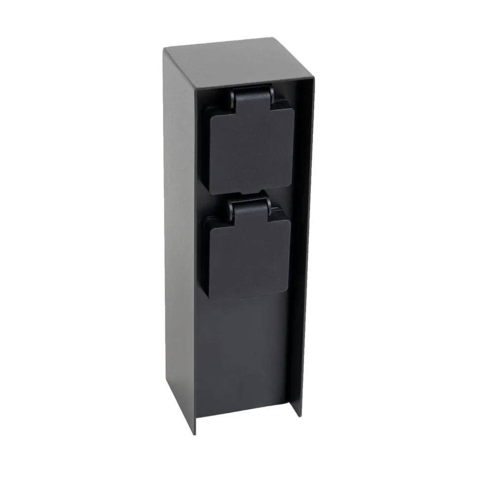 Moderne strømsøjle Foranda i sort med 2 stikkontakter Kroppen på denne stikkontaktsøjle er lavet af rustfrit stål med en sort finish, hvorved designet er meget ligetil og moderne og passer godt til moderne arkitektur. De to stikkontakter er beskyttet af et hængslet dæksel og kan udstyres med forskellige enheder – permanent eller midlertidigt. For eksempel kan haveredskaber forsynes med strøm, men du kan også tilslutte sæsonbestemt dekorativ belysning her om sommeren eller vinteren og belyse haven eller huset smukt udenfor. 2 x CEE 7/3 (maks. 16A/maks. 3600 W)