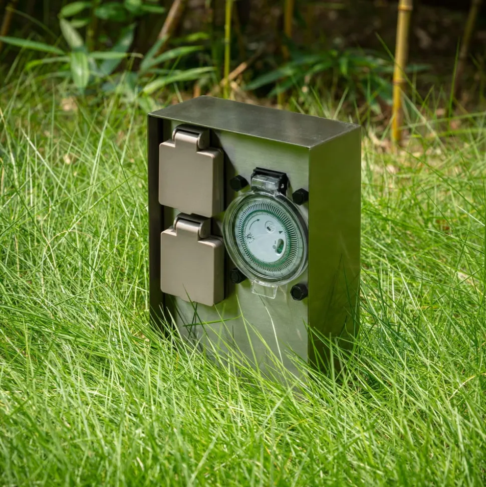 Foranda passer med sit moderne design til moderne udendørs miljøer og er der en pålidelig strømkilde med integreret timer, der kan bruges efter behov til at kunne bruge apparater gentagne gange midlertidigt uden at skulle tænde dem hver gang. Dette er især praktisk, hvis man i en periode ønsker at bruge dekorativ udendørs belysning med stik, som det ofte er tilfældet i juletiden. Med timeren kan lysets varighed og tændingstidspunkt præcist indstilles. Den sorte overflade på det kantede rustfri stålhus er særligt markant og elegant.