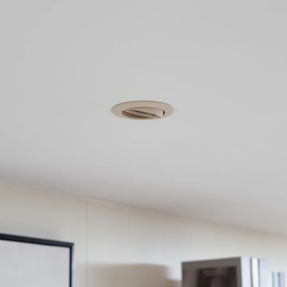 Prios forsænket loftlampe Fibur, beige, aluminium, Ø 8,2 cm