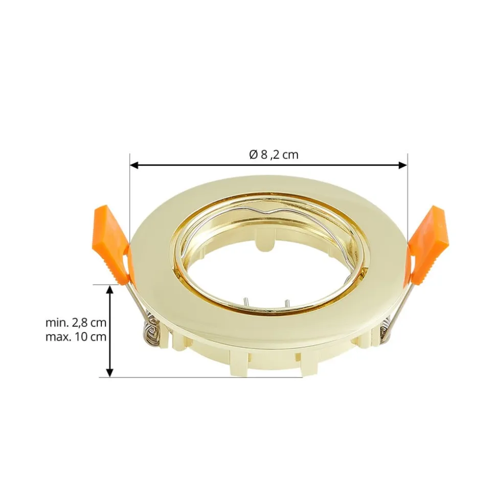 Prios forsænket loftlampe Fibur, guld, aluminium, Ø 8,2 cm