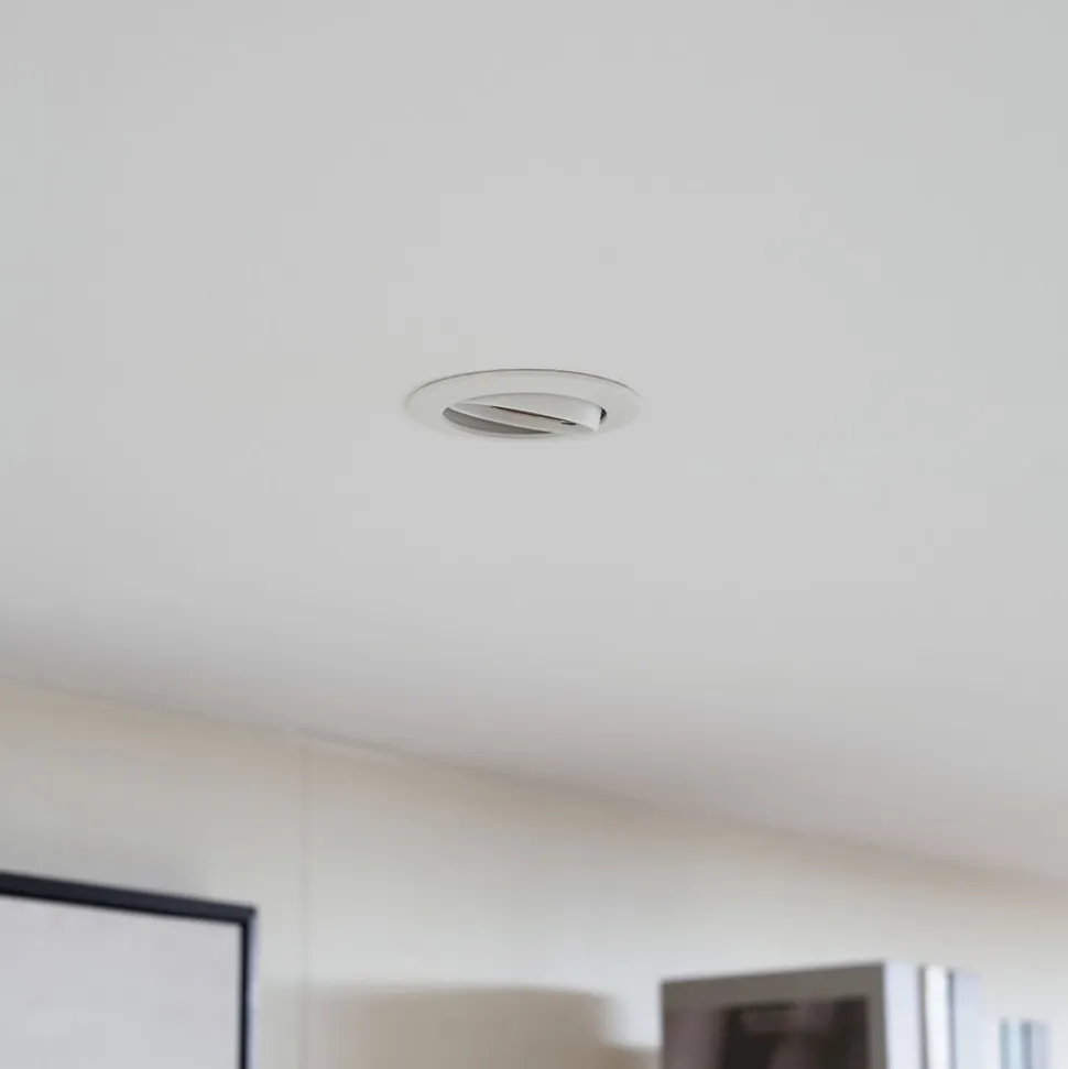 Prios forsænket loftlampe Fibur, hvid, aluminium, Ø 8,2 cm