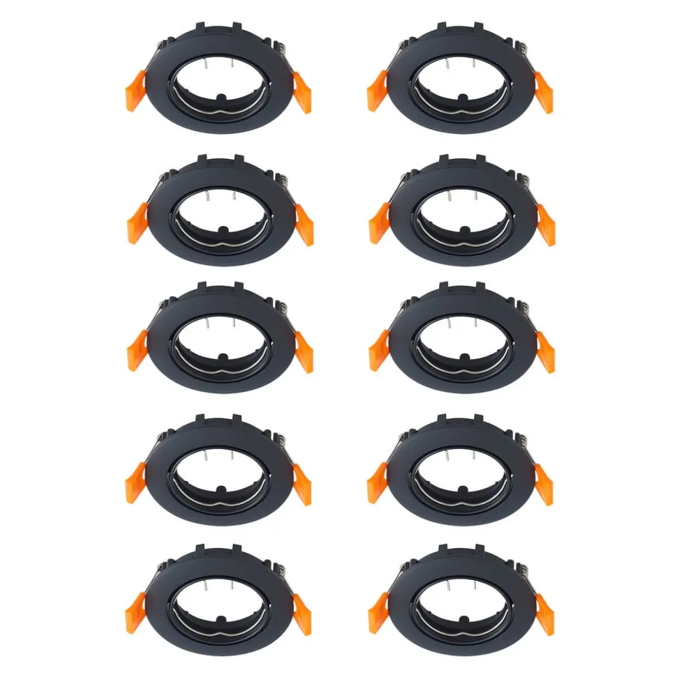 Prios forsænket loftlampe Fibur, sort, zink, Ø8,2cm, 10stk