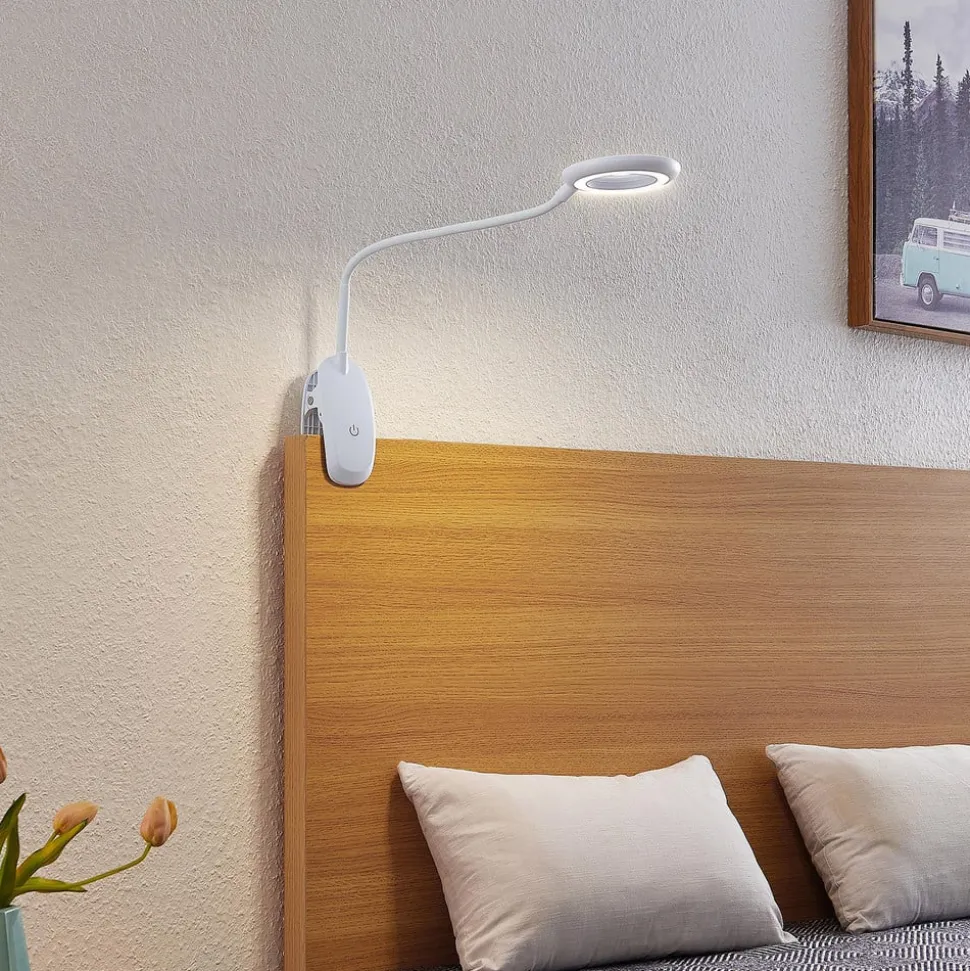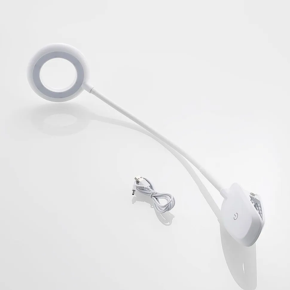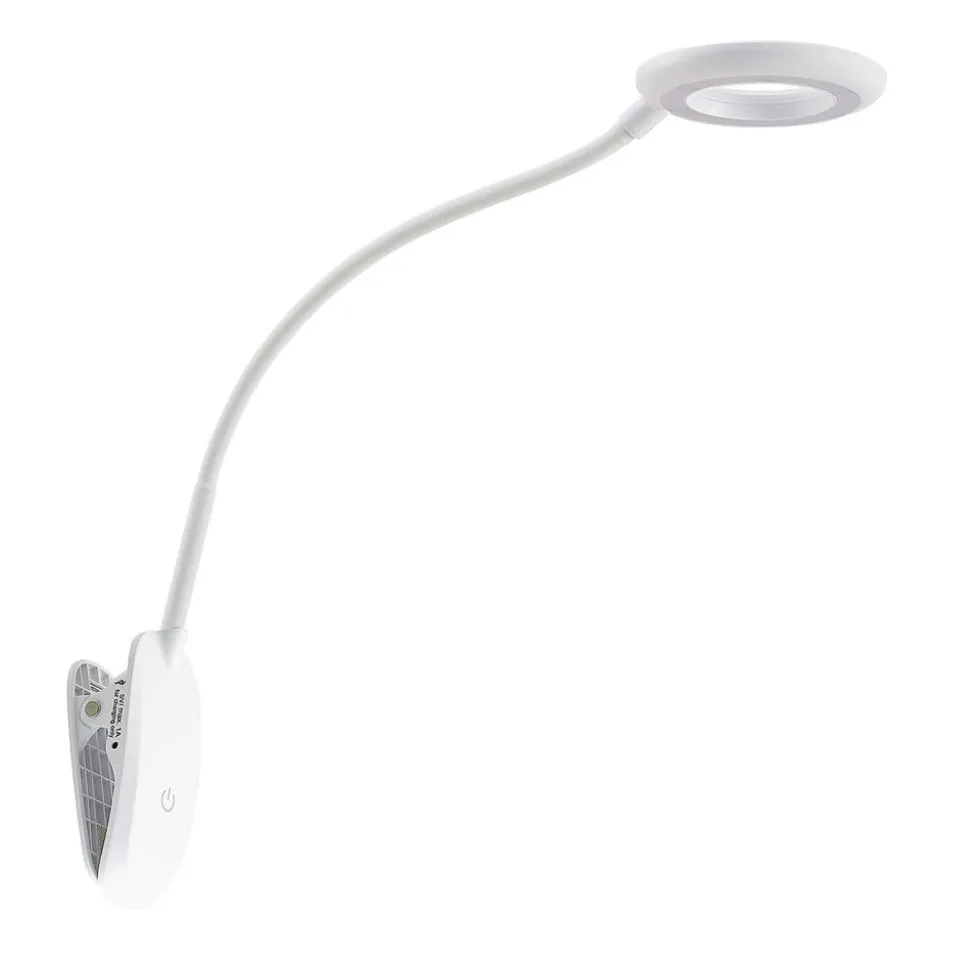 Enkel Harumi LED-klemmelampe med fleksibel lampearm, USB Harumi LED-klemmelampen kan bruges næsten overalt og kan derfor også bruges fleksibelt i hjemmet. Det ringformede lampehoved og den slanke, fleksible lampearm dominerer det moderne design, som harmonerer meget godt med moderne indretning. Denne lampe kan oplades med et USB-kabel og er også trinløst dæmpbar, så den opfylder alle krav.