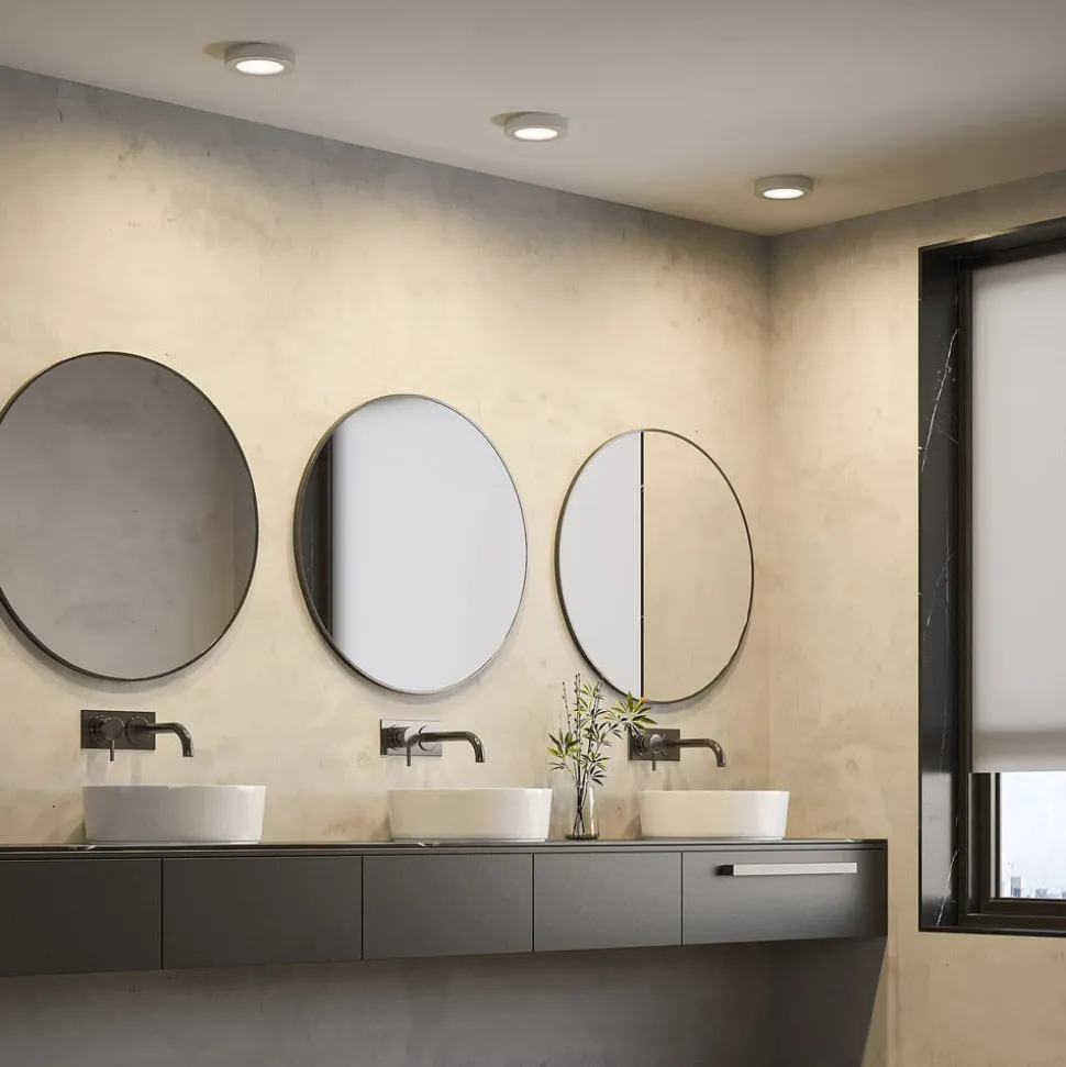 Edwina rund LED-loftlampe med sølvfarvet ramme og kapslingsgrad IP44, forudindstillelig lysfarve – i et praktisk sæt med 10 stk. Denne LED-loftlampe med fastmonterede lysdioder er en klassisk allrounder til mange lejligheder. Med en DIP-kontakt på huset kan man vælge en af tre lysfarver før installation – alt efter hvad der passer bedst til stedet og formålet. LED’erne giver stærkt lys med lavt strømforbrug og er derfor særligt effektive. Hvis det er nødvendigt, kan lysintensiteten justeres ved hjælp af en ekstern dæmper. Derudover giver kapslingsgraden IP44 god beskyttelse mod fugt, hvilket betyder, at Edwina også kan bruges til at oplyse fugtige rum. LED-loftlampen kan med fordel anvendes i både kommercielle og private omgivelser, og det runde design med sølvramme fremstår behageligt diskret og alsidigt. – Forudindstillelig lysfarve (DIP-kontakt) – IP44 kapslingsgrad til badeværelser og fugtige rum – Eksternt dæmpbar – Leveres i sæt med 10 stk