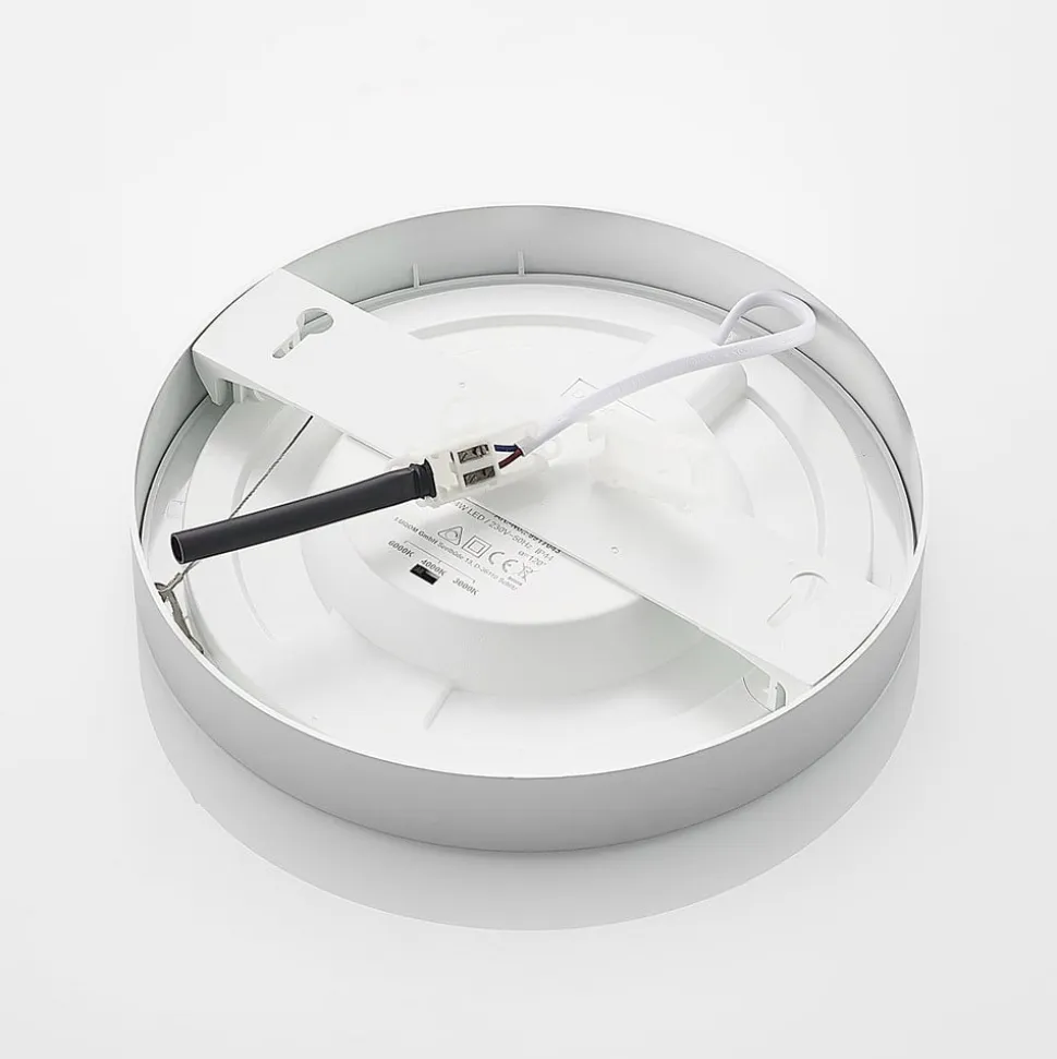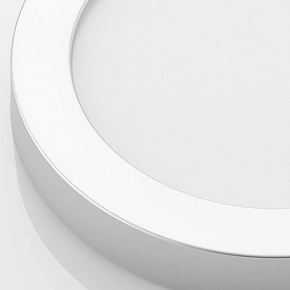 Edwina rund LED-loftlampe med sølvfarvet ramme og kapslingsgrad IP44, forudindstillelig lysfarve – i et praktisk sæt med 10 stk. Denne LED-loftlampe med fastmonterede lysdioder er en klassisk allrounder til mange lejligheder. Med en DIP-kontakt på huset kan man vælge en af tre lysfarver før installation – alt efter hvad der passer bedst til stedet og formålet. LED’erne giver stærkt lys med lavt strømforbrug og er derfor særligt effektive. Hvis det er nødvendigt, kan lysintensiteten justeres ved hjælp af en ekstern dæmper. Derudover giver kapslingsgraden IP44 god beskyttelse mod fugt, hvilket betyder, at Edwina også kan bruges til at oplyse fugtige rum. LED-loftlampen kan bruges godt i både kommercielle og private omgivelser, og det runde design med sølvramme fremstår behageligt diskret og alsidigt. – forudindstillelig lysfarve (DIP-kontakt) – kapslingsgrad IP44 til badeværelser og fugtige rum – eksternt dæmpbar – armaturet leveres i et sæt med 10 stk
