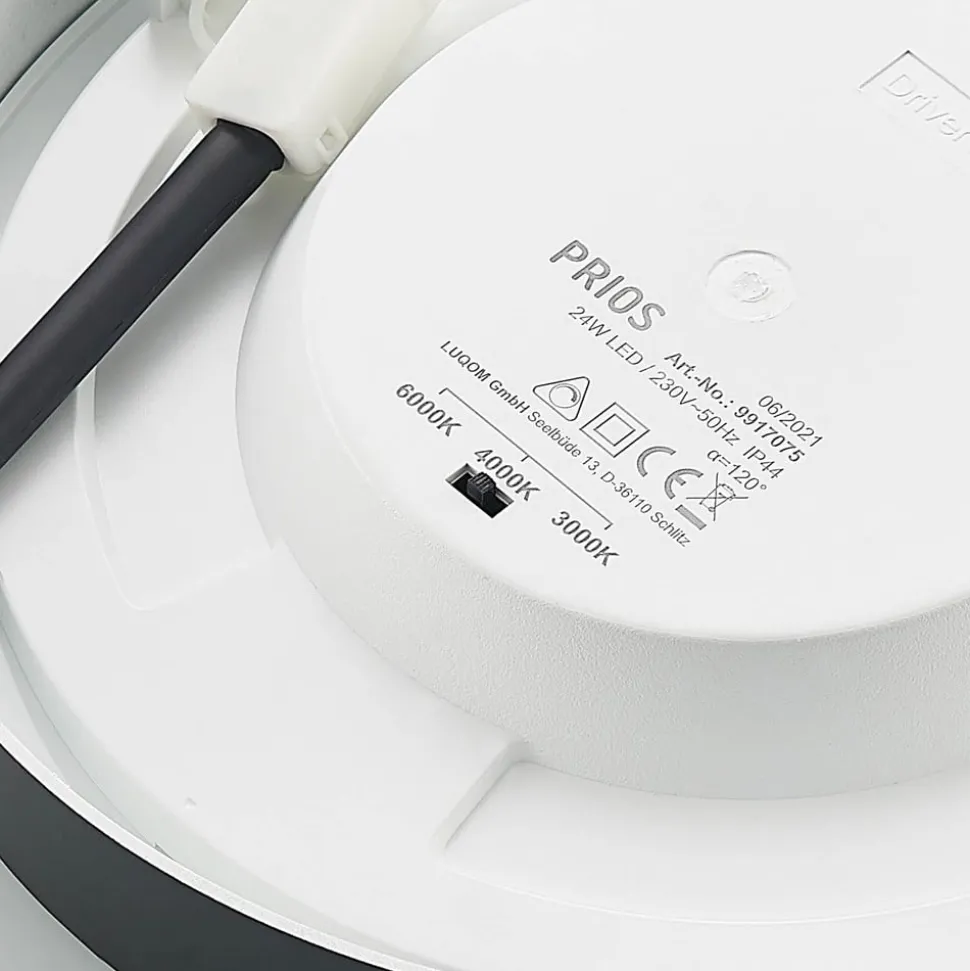 Prios LED-loftlampe Edwina, sort, 25 cm, CCT, IP44